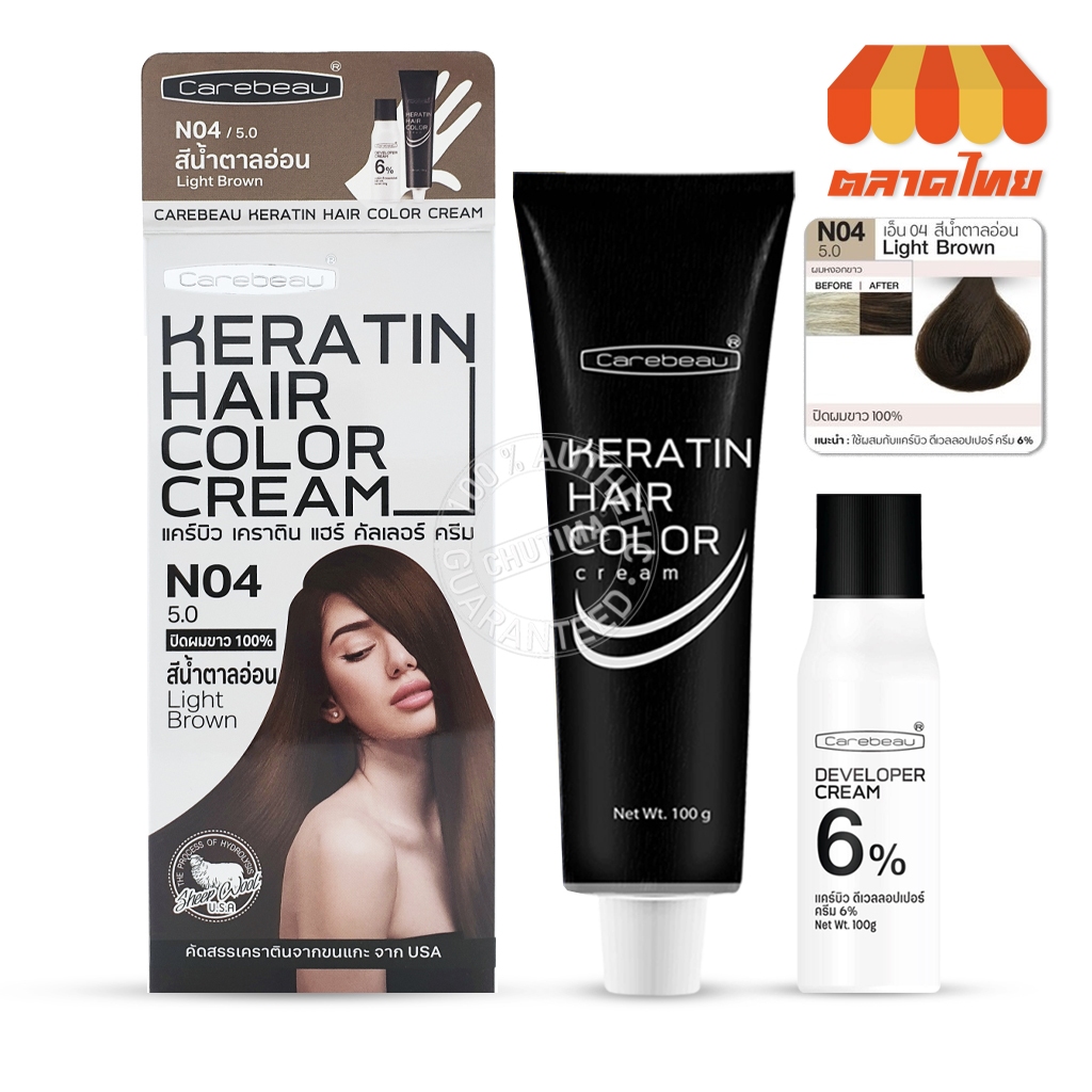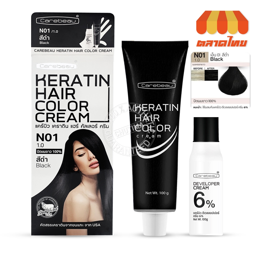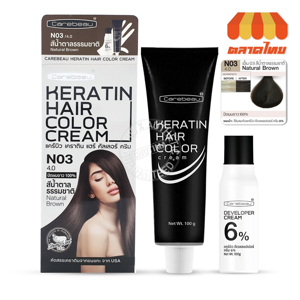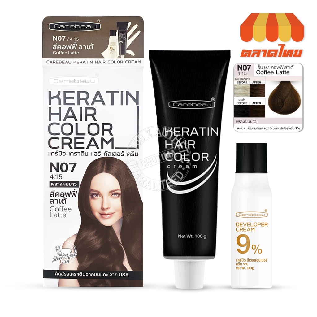 สีย้อมผม แคร์บิว เคราติน แฮร์ คัลเลอร์ ครีม Carebeau Keratin Hair Color Cream 100g.