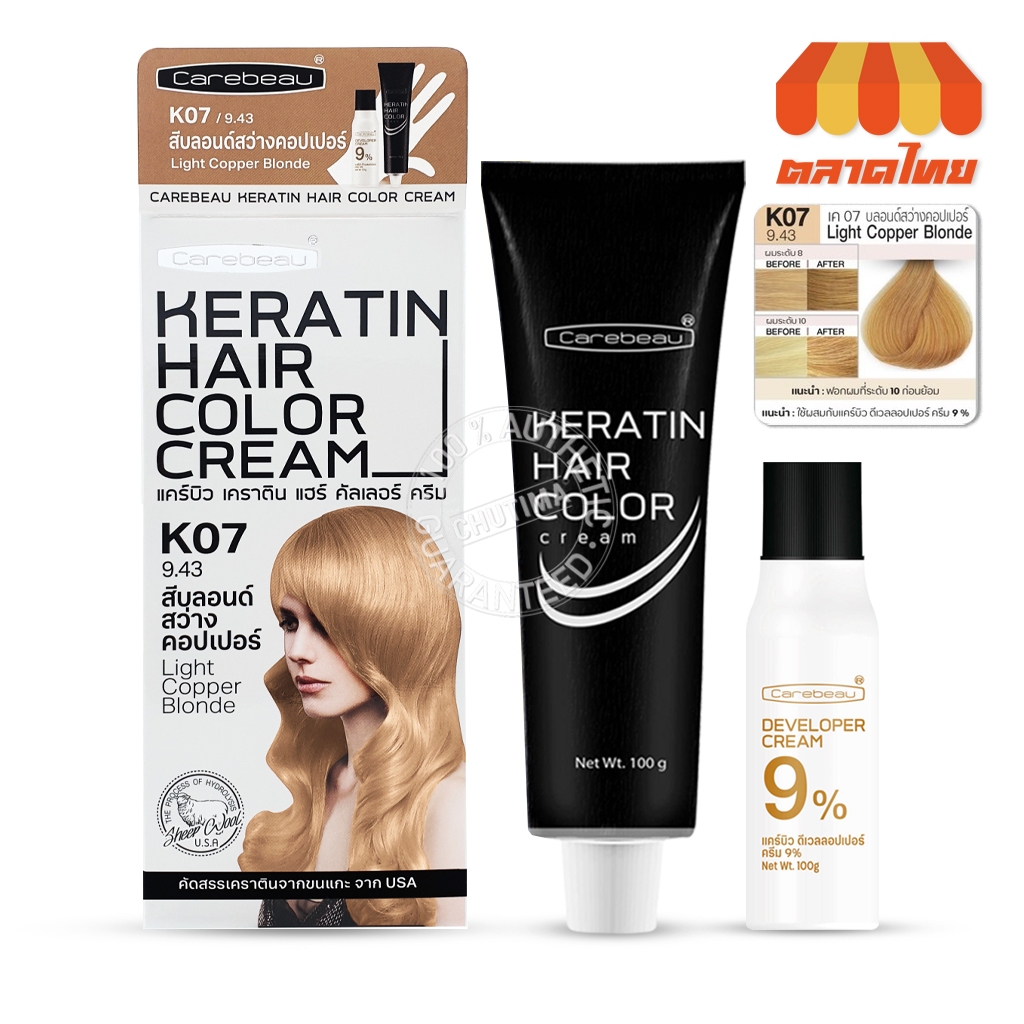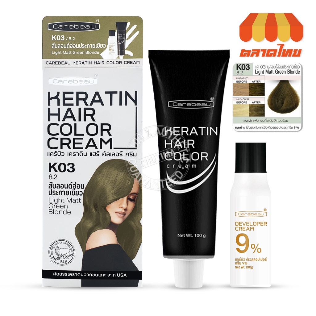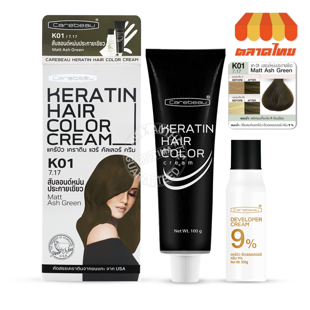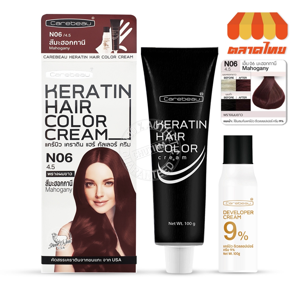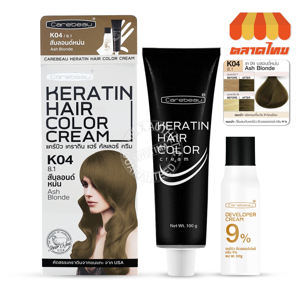 สีย้อมผม แคร์บิว เคราติน แฮร์ คัลเลอร์ ครีม Carebeau Keratin Hair Color Cream 100g.