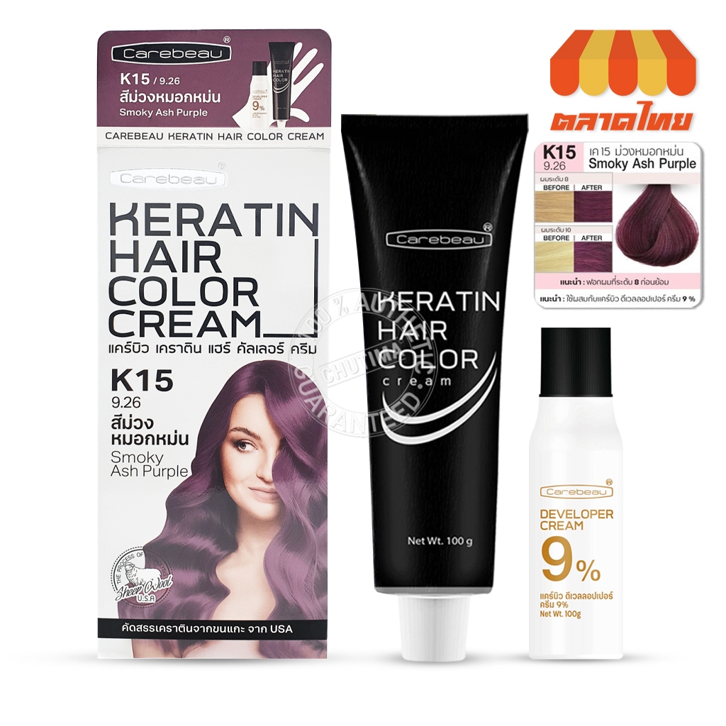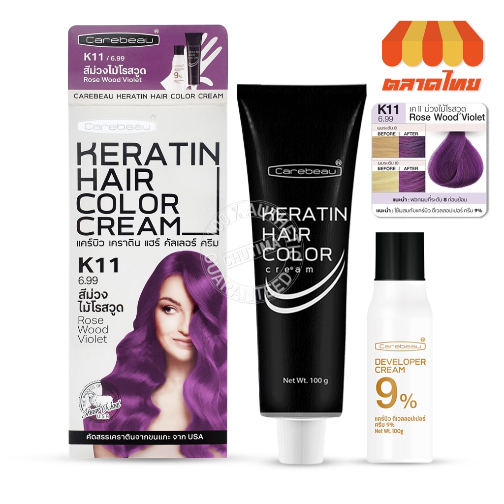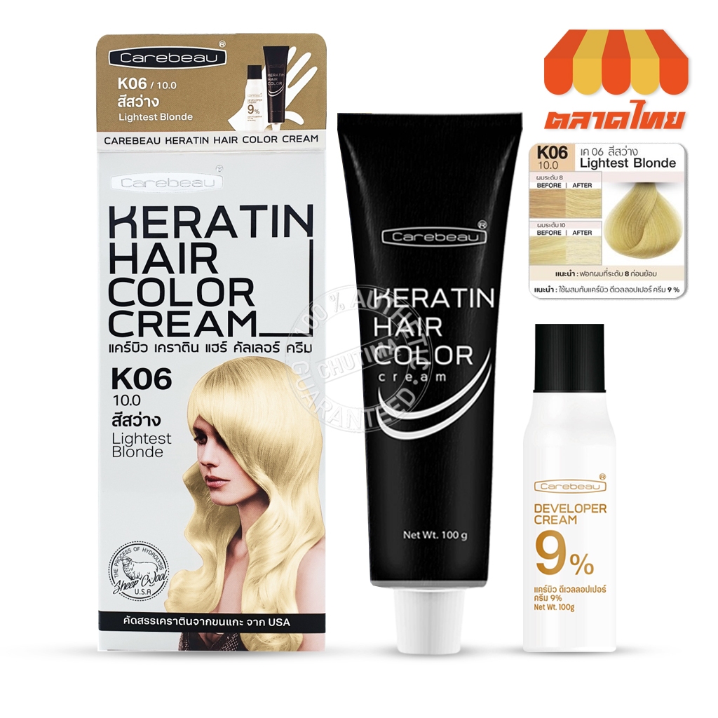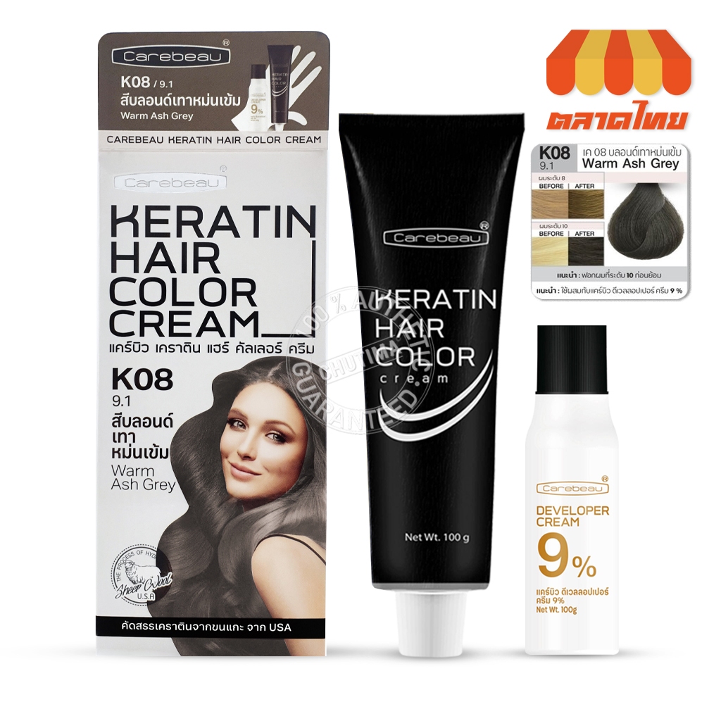 สีย้อมผม แคร์บิว เคราติน แฮร์ คัลเลอร์ ครีม Carebeau Keratin Hair Color Cream 100g.