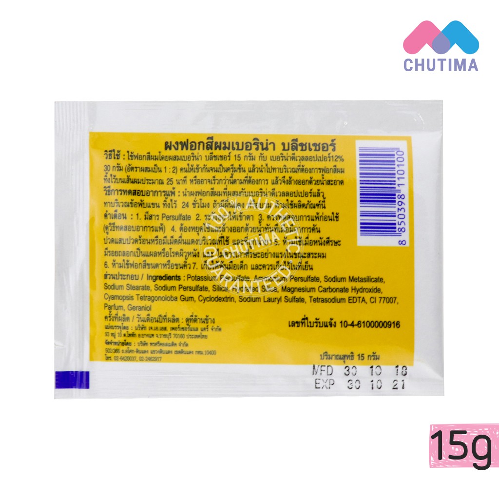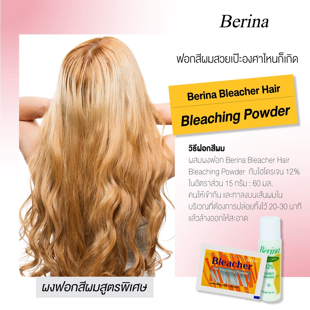 Berina hair bleaching powder ผงฟอก ผงกัด สีสว่าง เปลี่ยนสี ผมเบอริน่า บลีชเชอร์ 1 ชุด