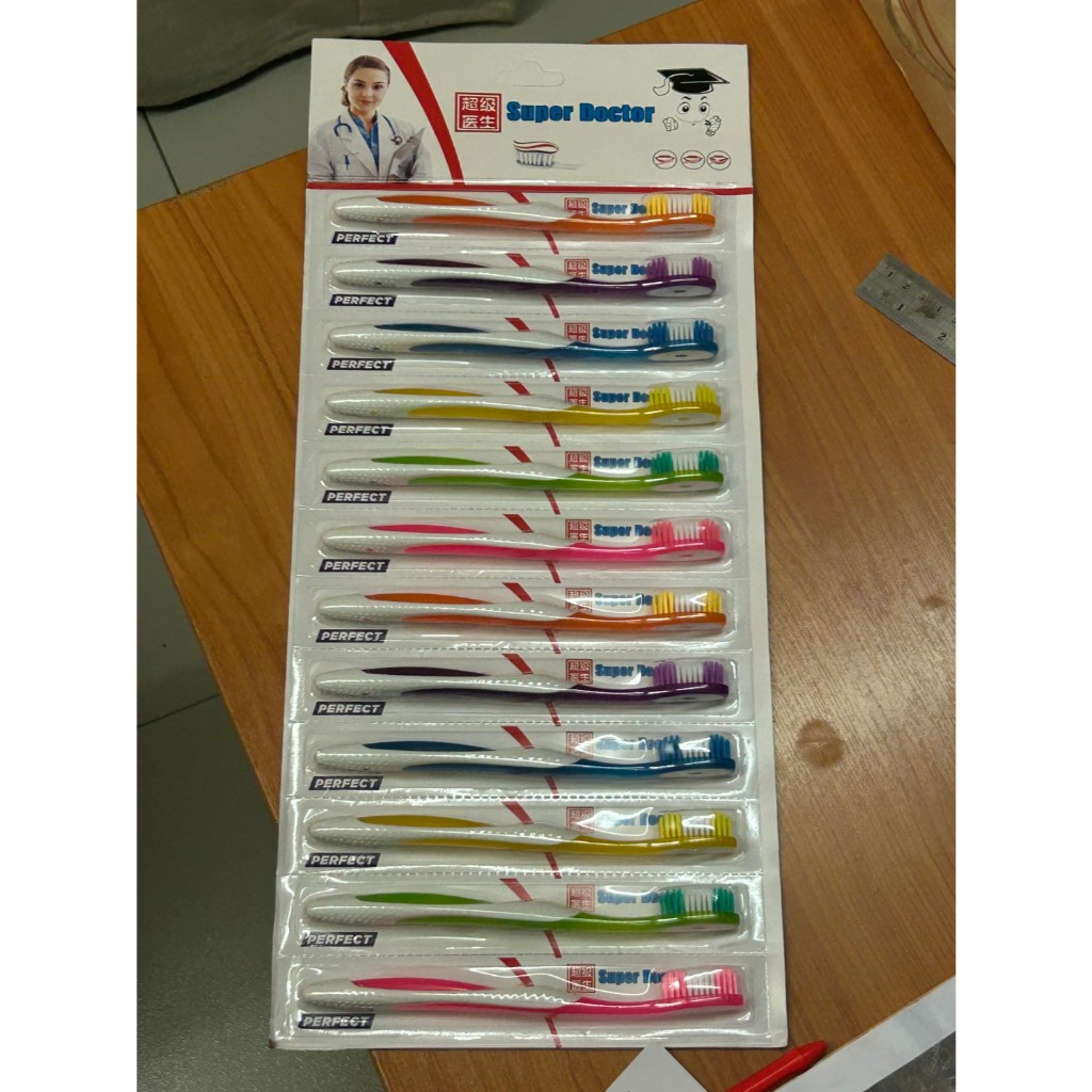 แปรงสีฟัน ผู้ใหญ่ นุ่มมาก ด้ามเล็ก แท่งเดี่ยว เส้นใย ทำความสะอาดลึก สุ่มสี Super Doctor S0569/S0570