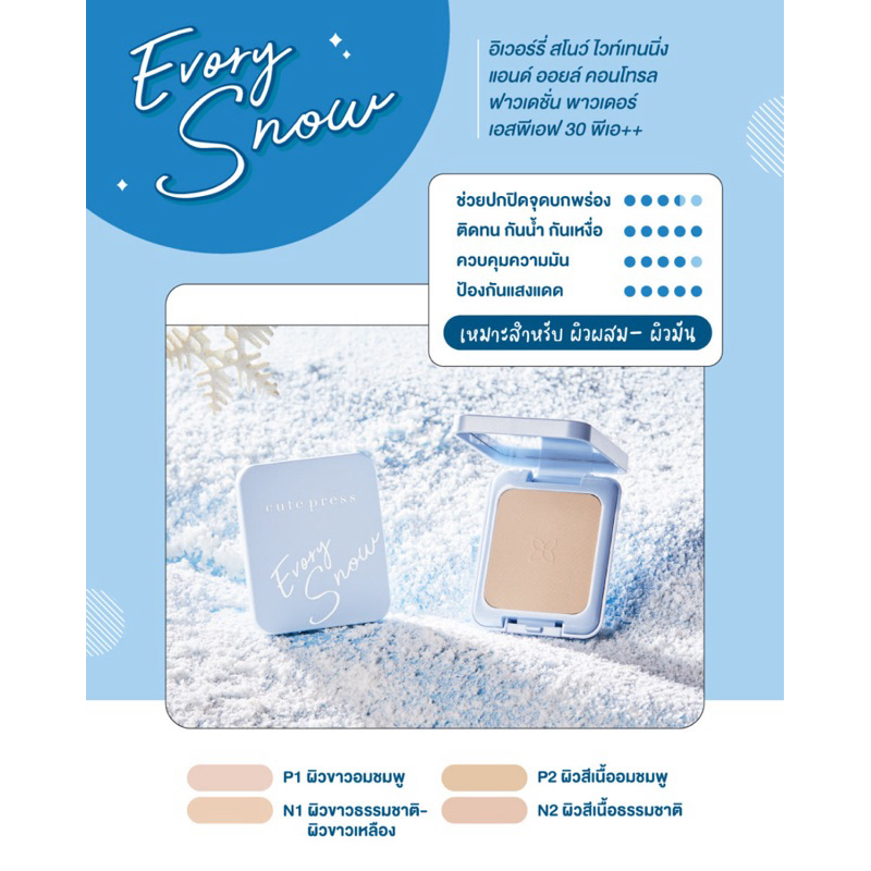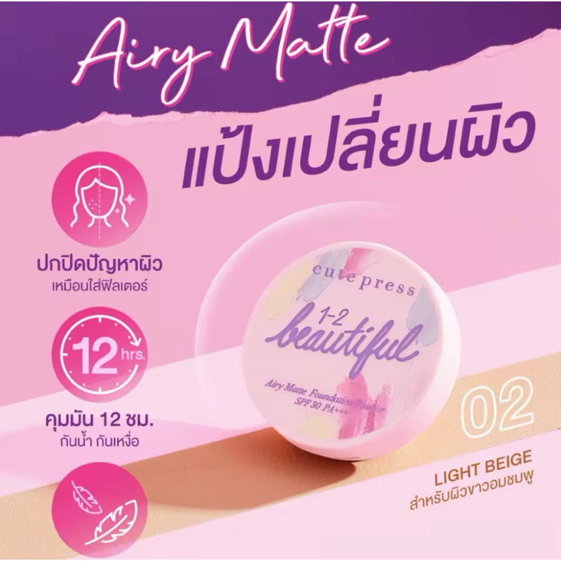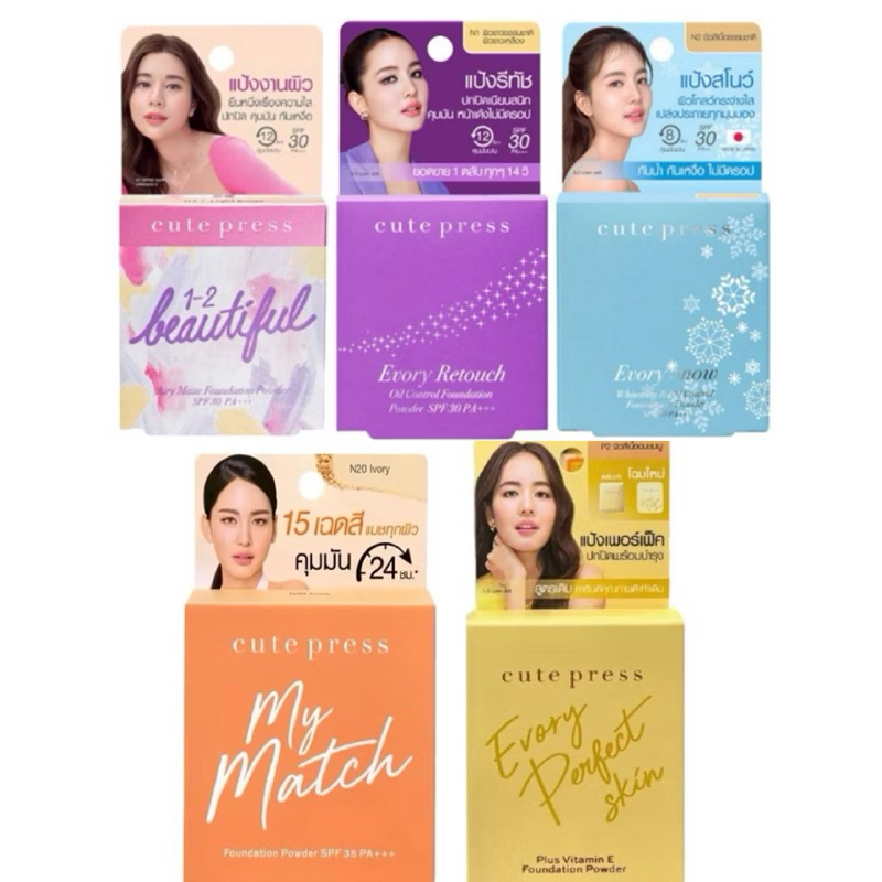 ❣️แป้งพัฟผสมรองพื้น ตลับม่วง,ฟ้า,ชมพู,ส้ม (5 กรัม) CUTE PRESS EVORY RETOUCH OIL CONTROL FOUNDATION POWDER SPF 30 PA+++