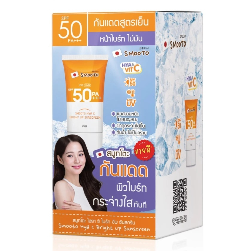 (กล่อง 6 ซอง) SMOOTO สมูทโตะ ไฮยา ซี ไบร์ท อัพ ซันสกรีน กันแดดสูตรเย็น (30 g.)