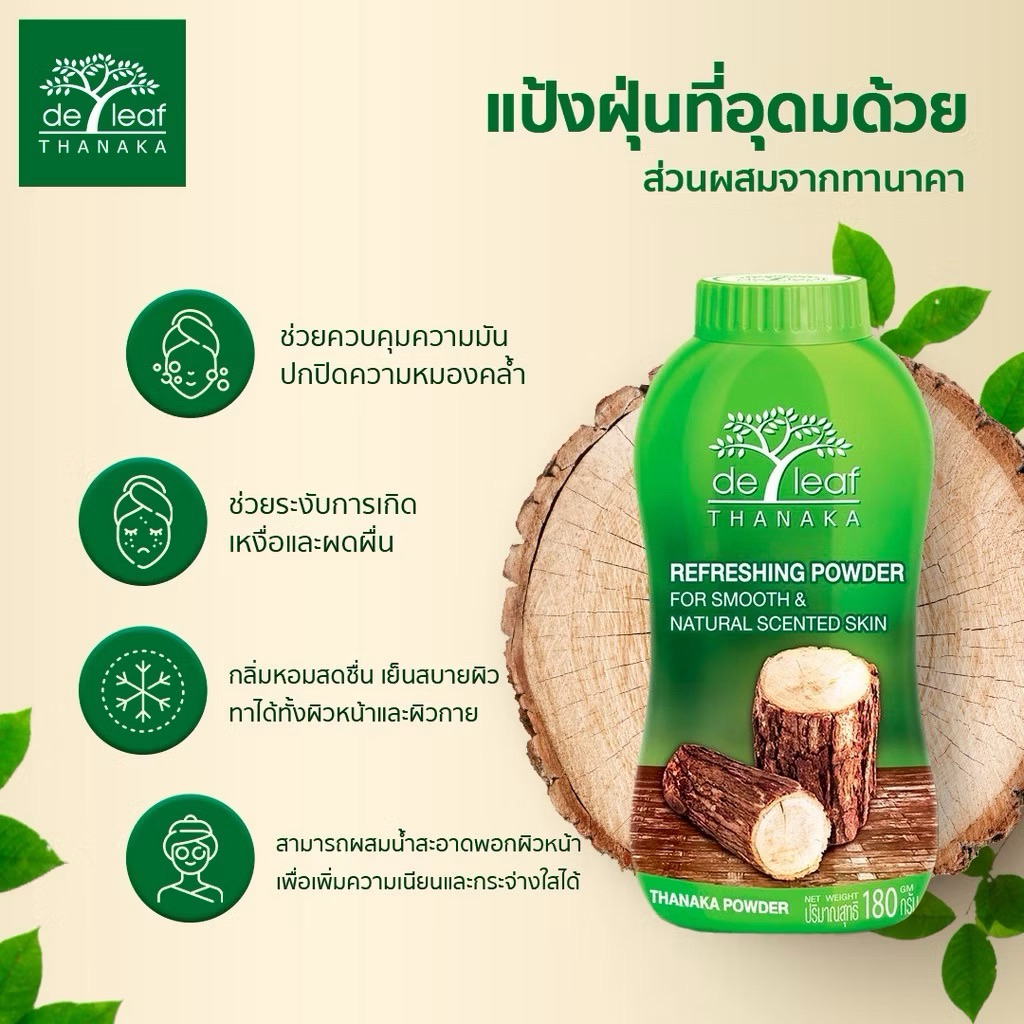 แป้งฝุ่น เดอ ลีฟ ทานาคา De Leaf Thanaka Refreshing Talcum Powder.(1 ชิ้น)