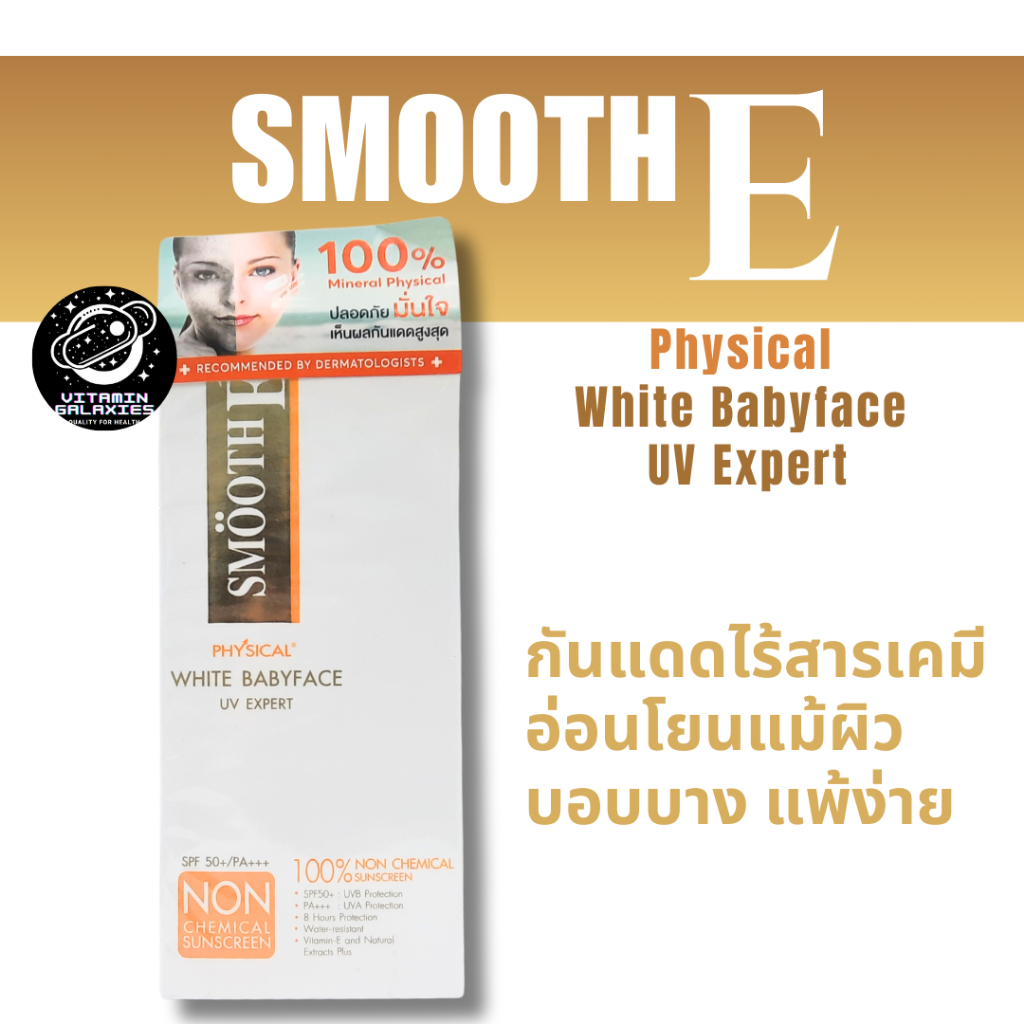 Smooth E Physical White Babyface UV Expert ครีมกันแดดสูตรอ่อนโยน (15กรัม) สีเบจ พร้อมส่ง ของแท้