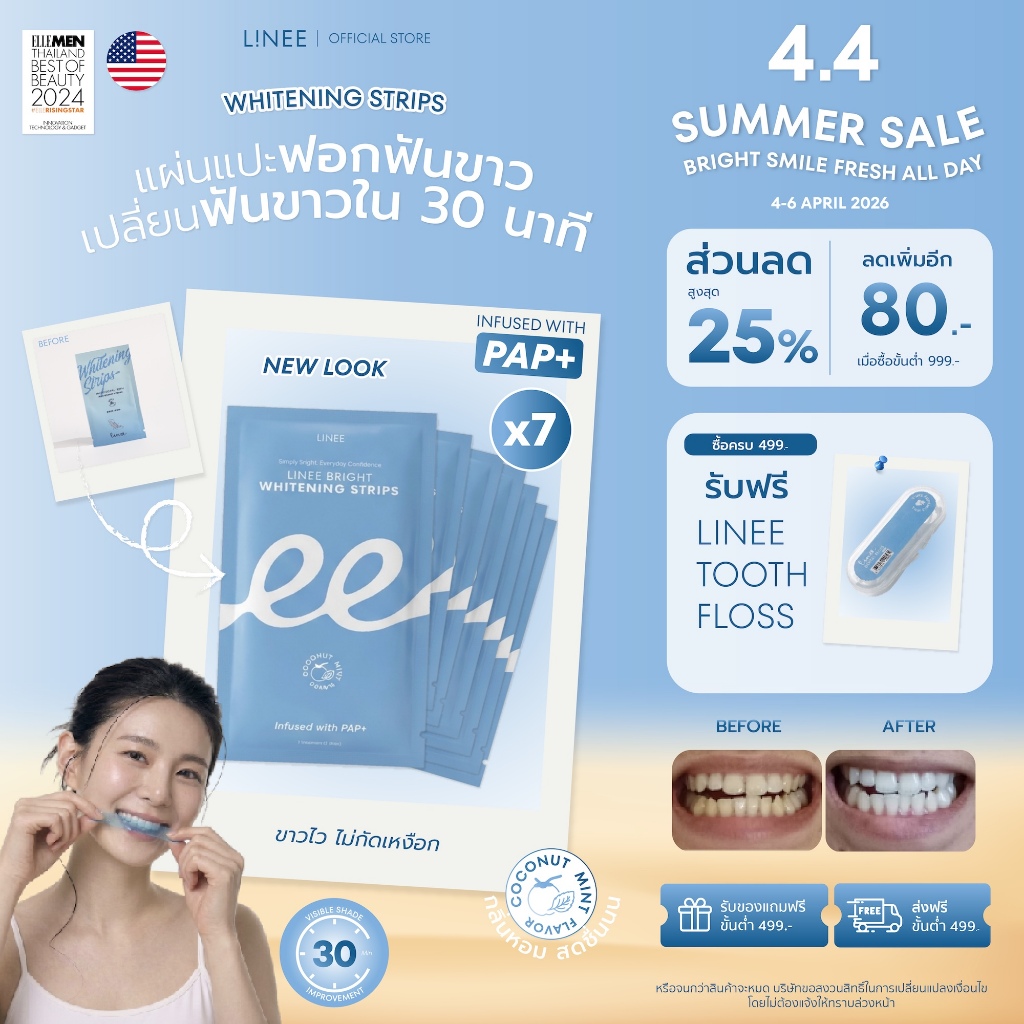 ลินี แผ่นแปะฟัน (7 ซอง) 1 ซอง มี 2 แผ่น สำหรับฟันบน และ ฟันล่าง ฟันขาว รับประกันของเเท้แน่นอน (since19)