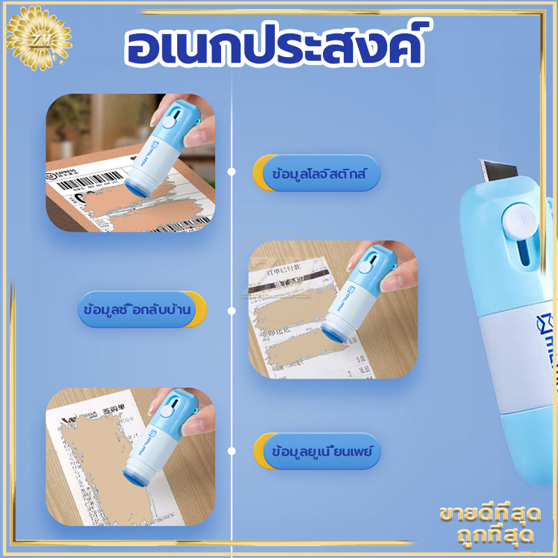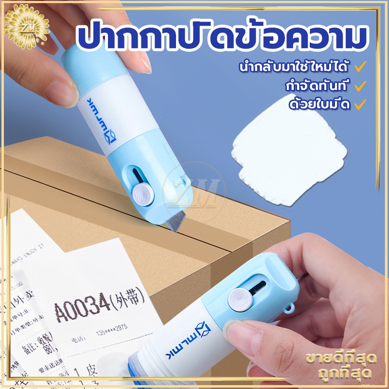 ปากกาปิดข้อความ คัตเตอร์กรีดกล่อง2in1 ลูกกลิ้งปิดข้อความ เติมน้ำยาได้ +มีดในตัว ปิดพัสดุ ที่ปิดที่อยู่ ลบเกลี้ยง