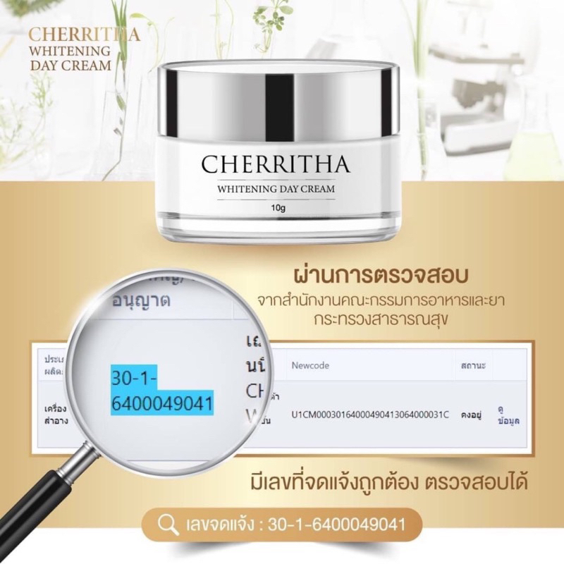 เฌอริตา(กล่องขาว) เดย์ครีม Cherritha Whitening Day Cream