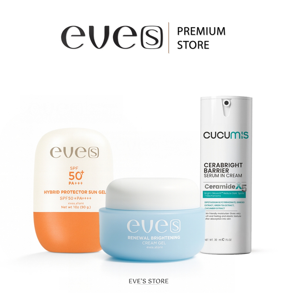 EVES อีฟส์ เซ็ตครีมเจลฟ้า ซันเจล เซราไบร์ท บำรุงผิวหน้า กระจ่างใส ลดเลือน ริ้วรอย ฝ้า กระ กันแดด