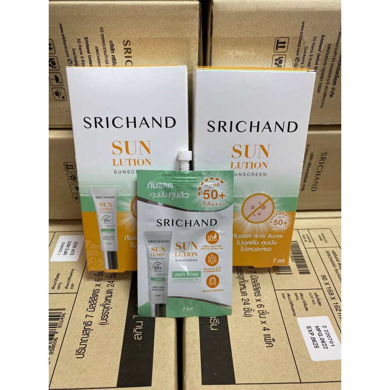 SRICHAND ศรีจันทร์ (ไวท์เทนนิ่ง/แอคเน่) ซันลูชั่น ซันสกรีน SPF50+ PA++++ ซองละ7มล.