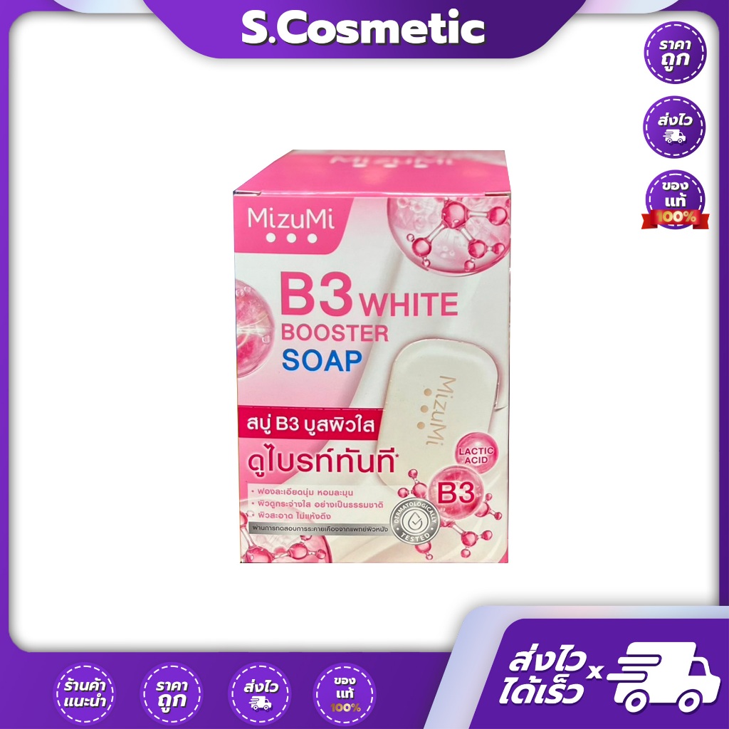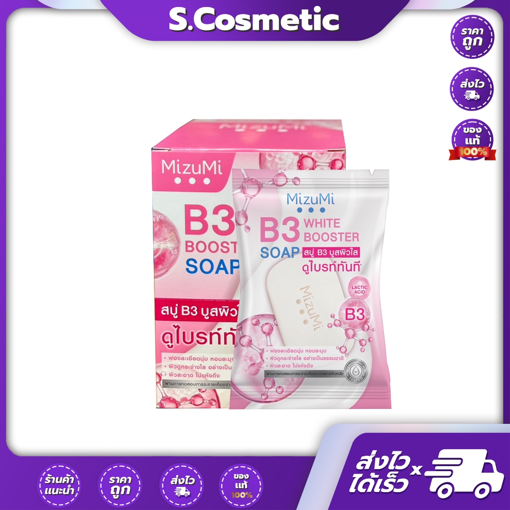 (ยกกล่อง/ก้อน) Mizumi B3 soap white booster มิซึมิ สบู่ B3 บูสผิวใส 60g