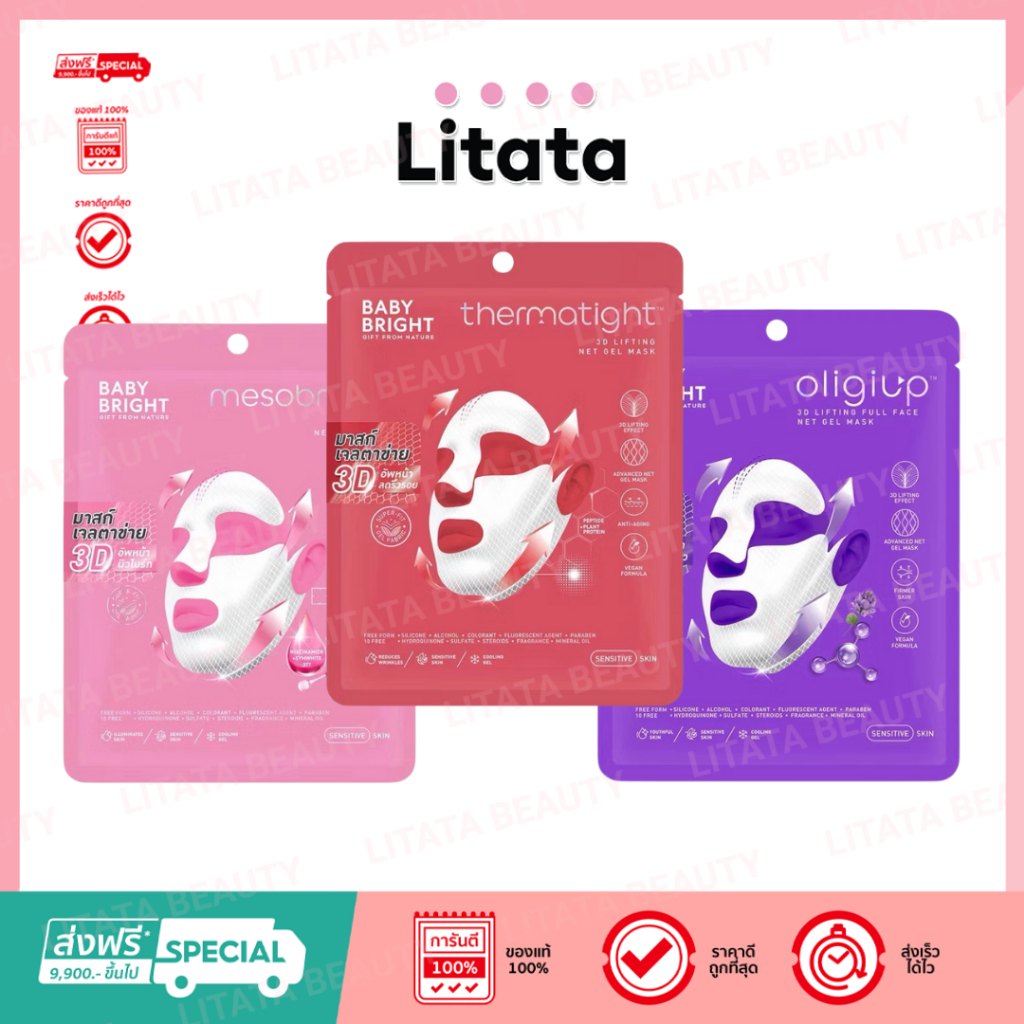 [ซอง] Baby Bright 3D Lifting Gel Mask เบบี้ไบร์ท 3 ดีลิฟติ้งเฟสเน็ต เจลมาสก์ 39 g
