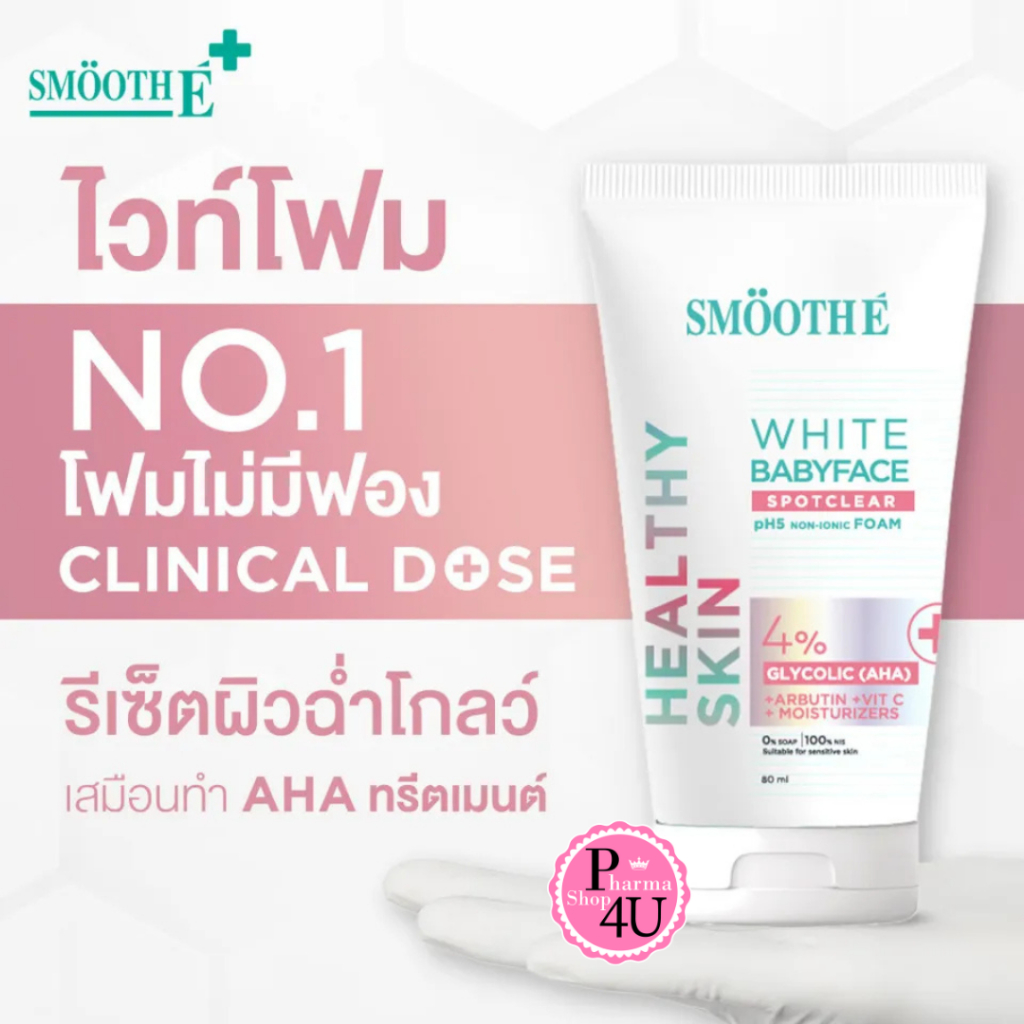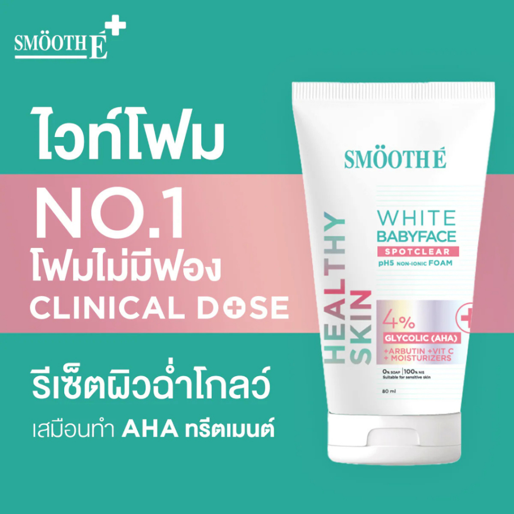Smooth E White Babyface Spotclear ไวท์โฟมไม่มีฟอง 4% Glycolic (AHA) 80/180 ml.