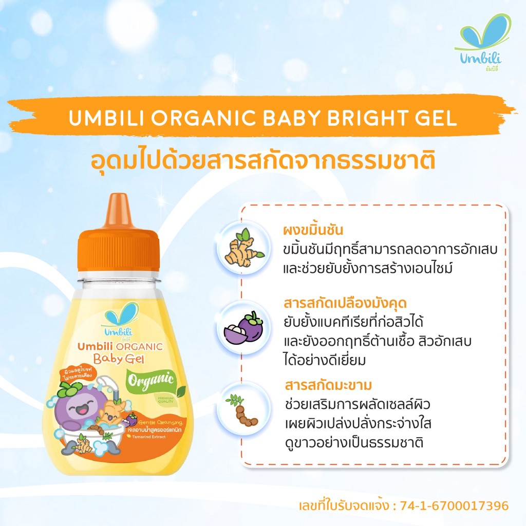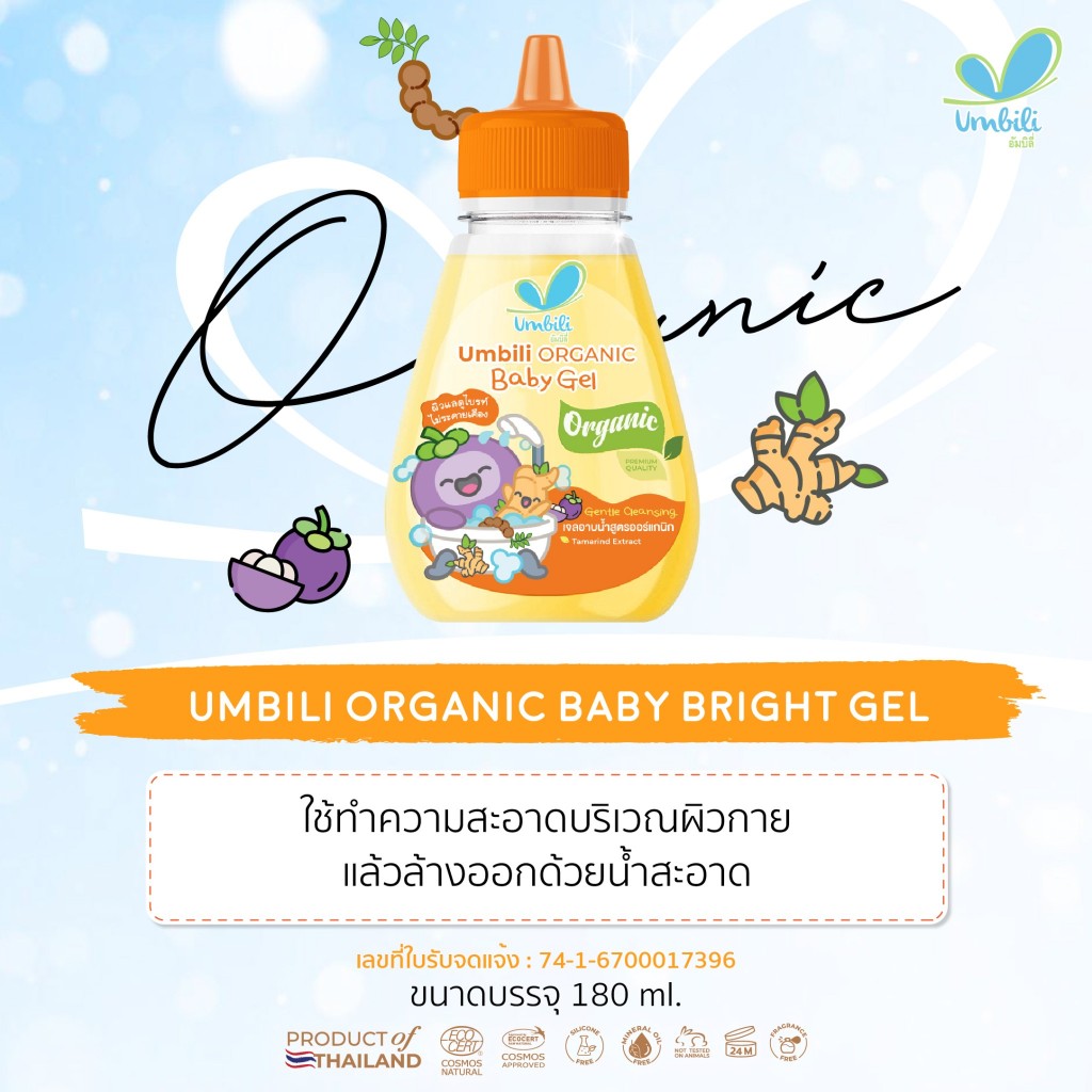 Umbili Organic Baby Bright Gel เจลอาบน้ำขมิ้น สูตรออร์แกนิก ขนาด 180 มล.