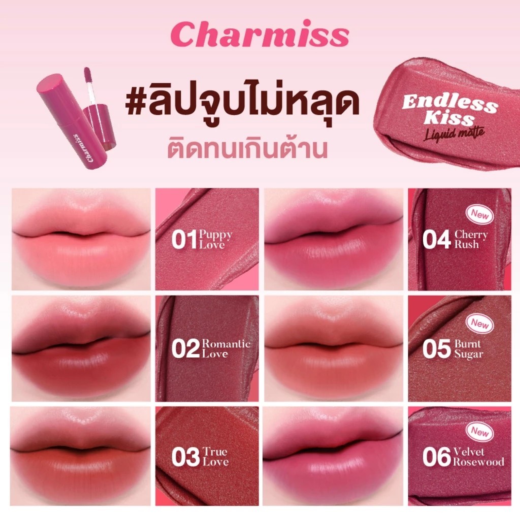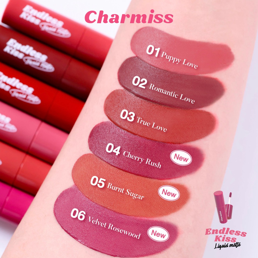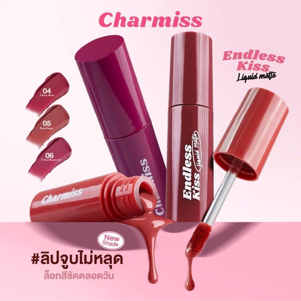 ถูก/แท้/มีไลฟ์ (มีสีใหม่) ลิป Charmiss Endless Kiss Liquid Matte ลิปแมท ติดทน ไม่ติดแมสก์ สีสวย สีชัด เกลี่ยง่าย เบาสบาย