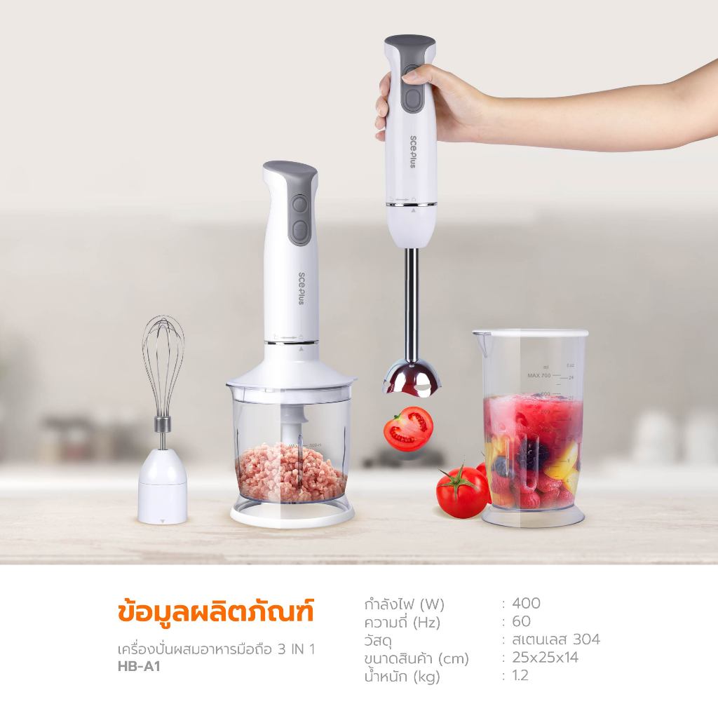 SCE Plus เครื่องปั่นผสมอาหารมือถือ 3 in 1 รุ่น HB-A1 - รับประกัน 2 ปี