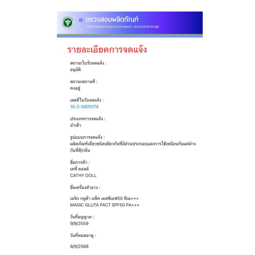เคที่ดอลล์ แป้งกลูต้า หน้าเด็ก 12g Cathy Doll Magic Gluta Pact SPF 50 PA+++ 12 g