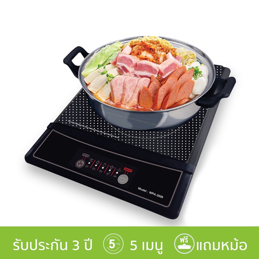 สมาร์ทโฮม เตาแม่เหล็กไฟฟ้าพร้อมหม้อ 1200 วัตต์ สีดำ รุ่น WPA-2009/2008 SMARTHOME INDUCTION COOKER 1200W WPA-2009