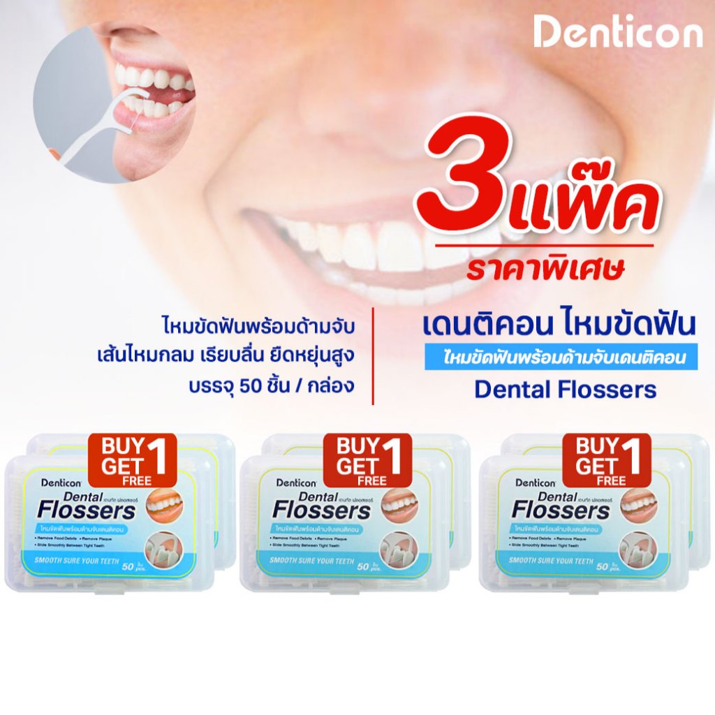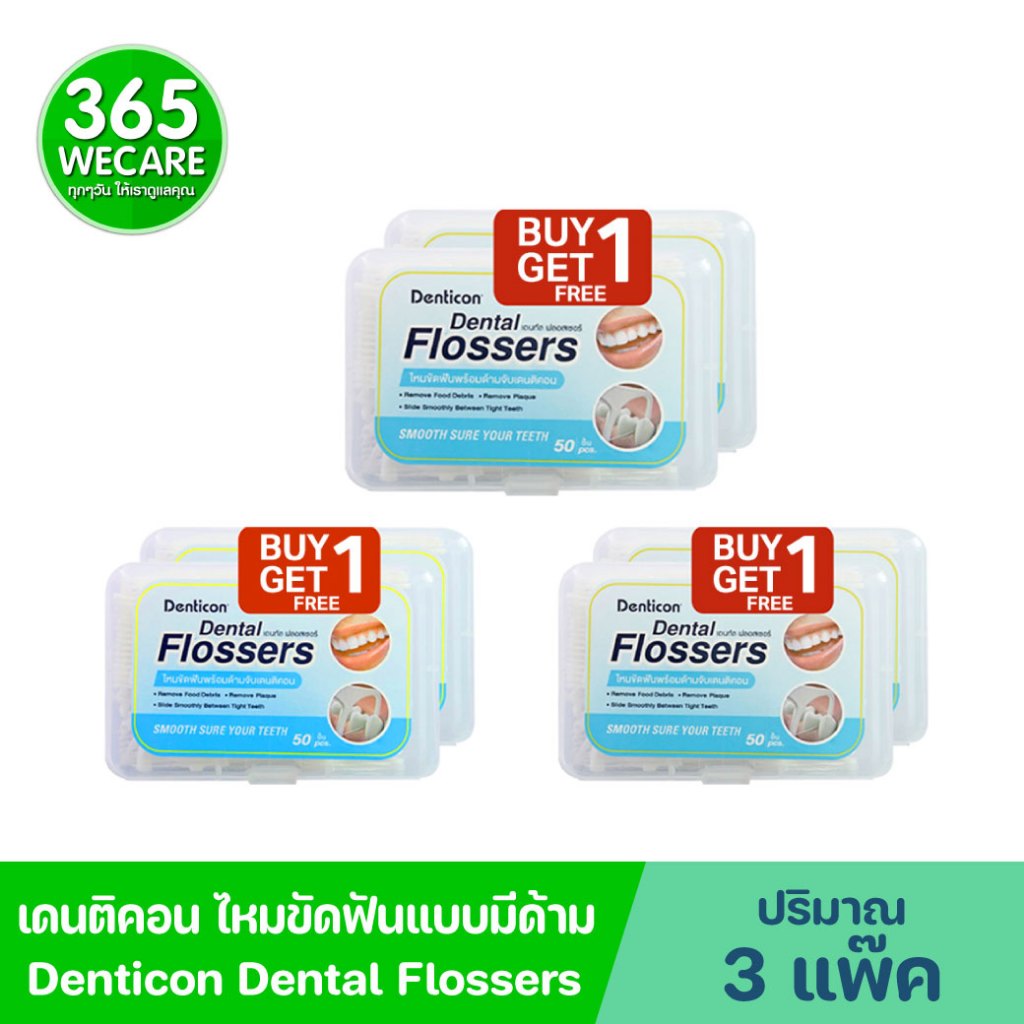 แพ็ค 3 (1แถม1) Panc Denticon Dental Flossers เดนติคอน ไหมขัดฟัน พร้อมด้าม ใช้ทำความสะอาดบริเวณซอกฟันลึก 365wecare
