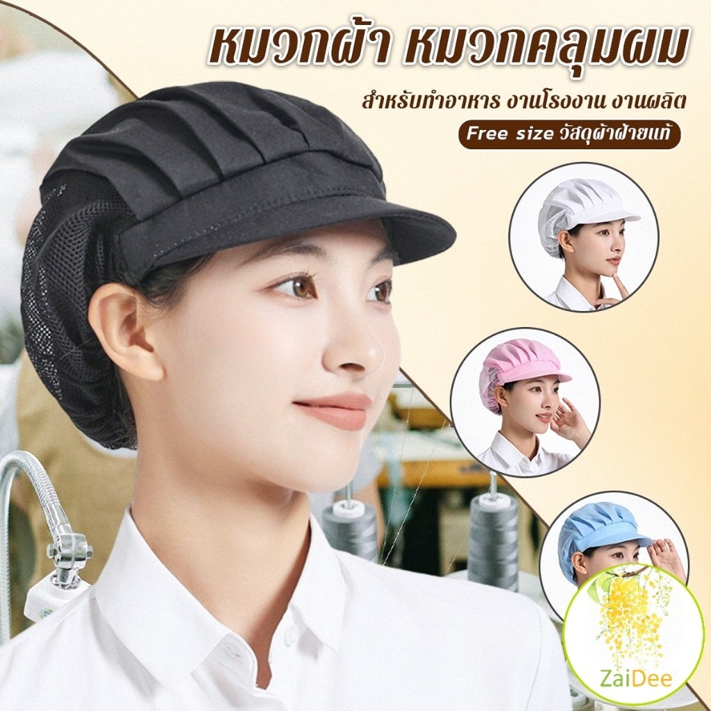 หมวกคลุมผมทําอาหาร หมวกเชฟ ป้องกันฝุ่น วัสดุผ้าฝ้าย สำหรับงานโรงงาน ผ้าตาข่าย Chef Cap