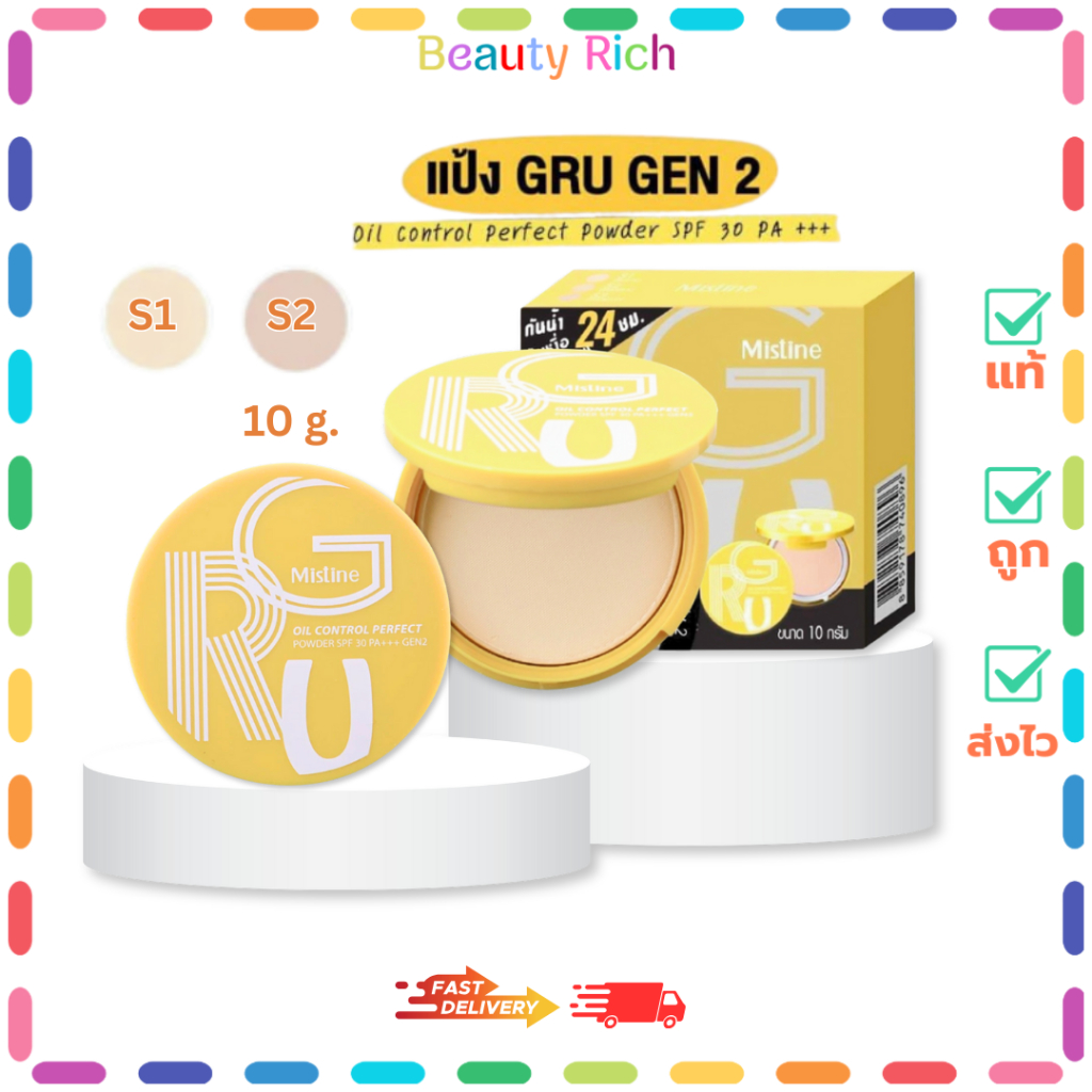 (1 ตลับ)Mistine Gru Oil Control Perfect มิสทิน กรู ออยล์ คอนโทรล เพอร์เฟค มีให้เลือก 2 เฉดสี(10 g.)