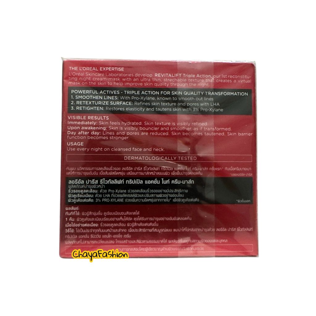 *SALE* L'Oreal ลอรีอัล ปารีส รีไวทัลลิฟท์ ทริปเปิ้ล แอคชั่น ไนท์ ครีม มาสก์ 50มล. Exp02/28