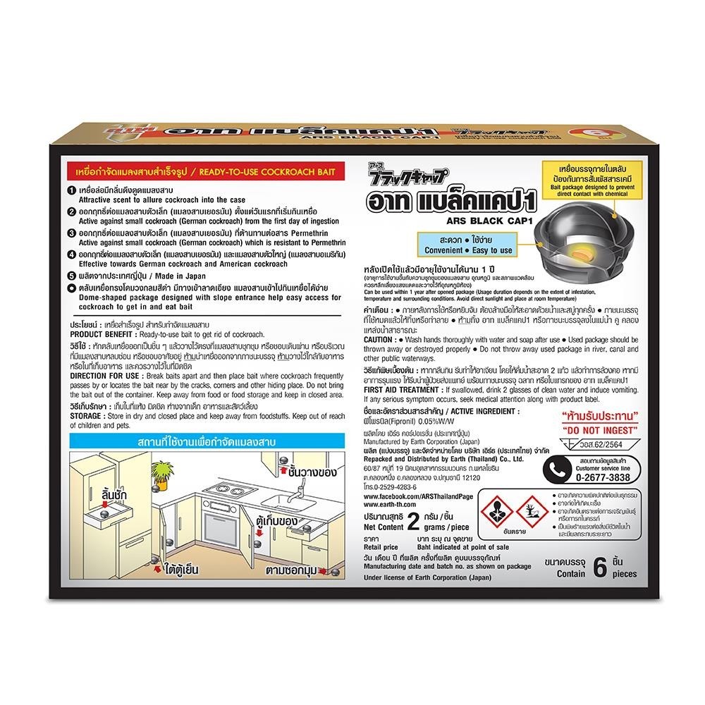 ARS เหยื่อกำจัดแมลงสาบสำเร็จรูป BLACK CAP1 12 กรัม แพ็ก6 จัดส่งโดย HomePro