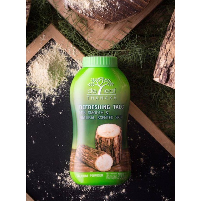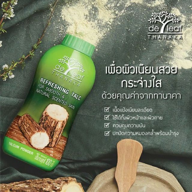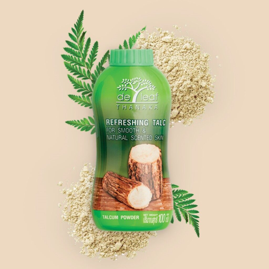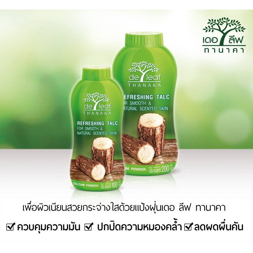 เดอ ลีฟ แป้งฝุ่น ทานาคา 80 กรัม / 180 กรัม De Leaf Thanaka Refreshing Talcum Powder ควบคุมความมัน