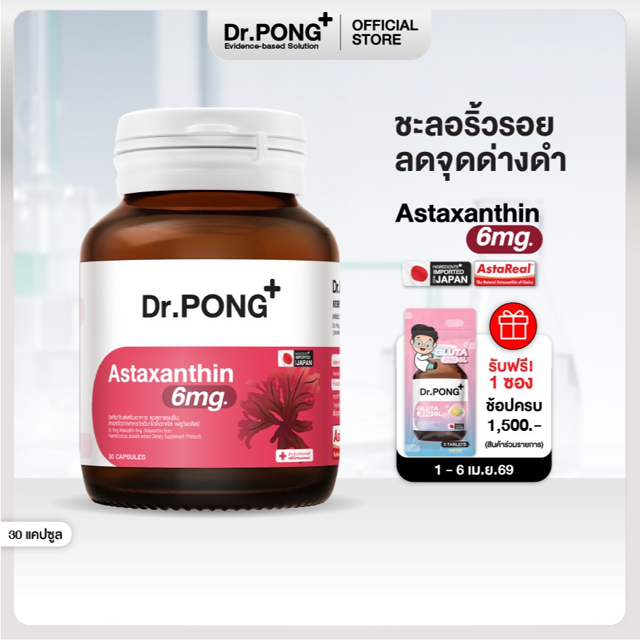 Dr.PONG Astaxanthin 6 mg AstaREAL from Japan แอสตาแซนธิน จากญี่ปุ่น ชะลอริ้วรอย ลดจุดด่างดำ