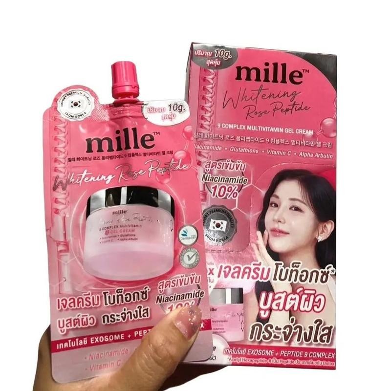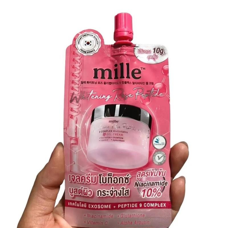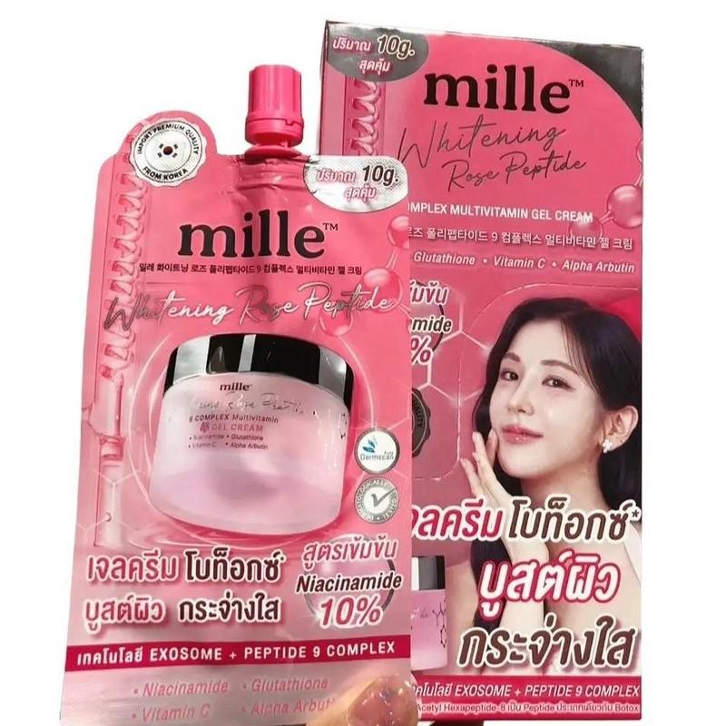 ( ยกกล่อง ) มิลเล่ Mille whitening rose peptide 9 complex multivitamin gel cream 10 g. เจลครีมโบท็อกซ์