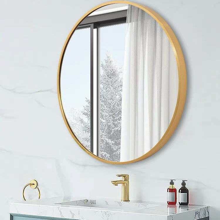 ส่งด่วน✅ กระจกกลมแขวนผนัง สำหรับติดผนังห้องนอน ห้องน้ำ แบบมินิมอล ขอบสีทอง สไตล์นอร์ดิก มีสามสี