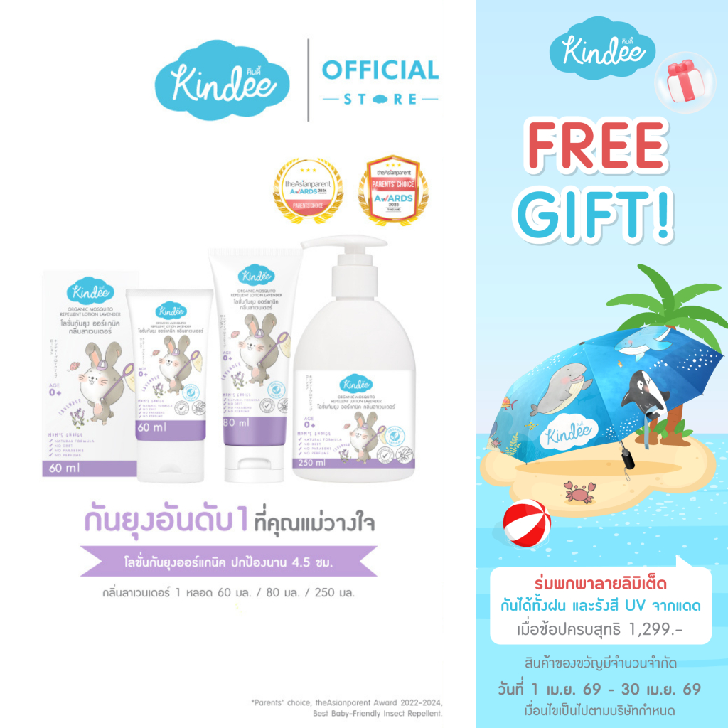 Kindee คินดี้ โลชั่นกันยุง กลิ่นลาเวนเดอร์ ปกป้องยาวนาน 4.5 ชม. (ใช้ได้ตั้งแต่แรกเกิด)
