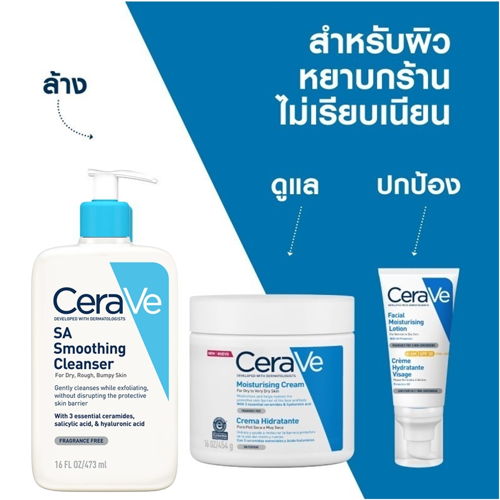 CERAVE SA Smoothing Cleanser 473 ml. - เซราวี เอสเอ สมูทติ้ง คลีนเซอร์ ผลิตภัณฑ์ทำความสะอาด สำหรับผิวหน้าและผิวกาย หยาบกร้าน ไม่เรียบเนียน 473 มล.