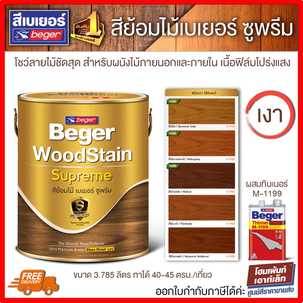 Beger สีย้อมไม้ เบเยอร์ซูพรีม ชนิดเงา /Beger WoodStain Supreme Gloss Finish (ขนาด 3.785 ลิตร)