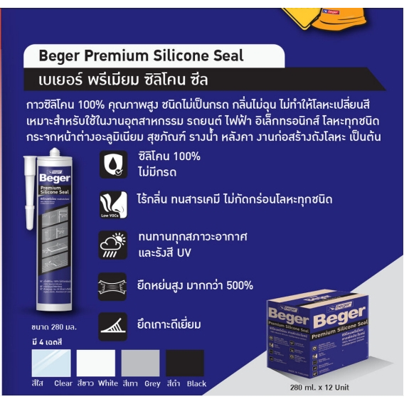 Beger Premium Silicone Seal เบเยอร์ พรีเมียม ซิลิโคน ซีล ซิลิโคนพรีเมียม สารพัดประโยชน์ ชนิดไม่มีกรด