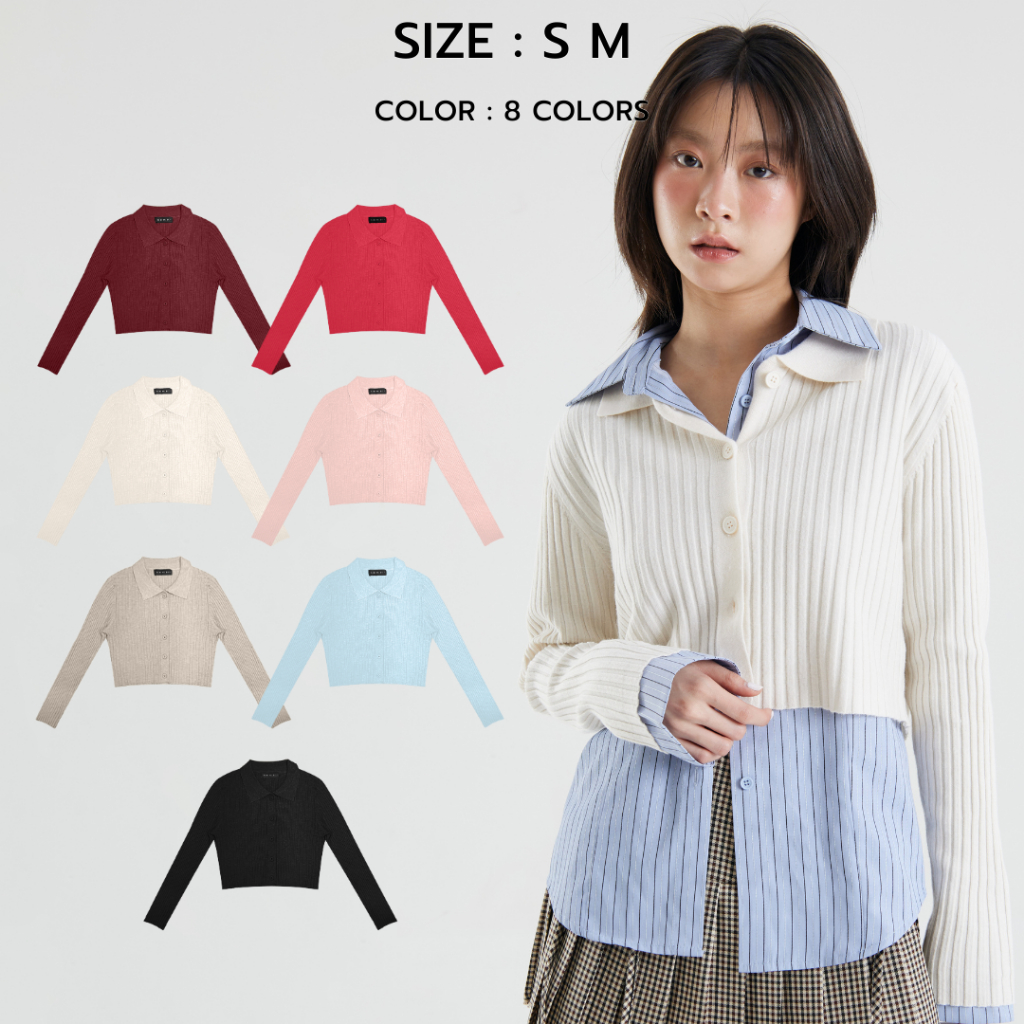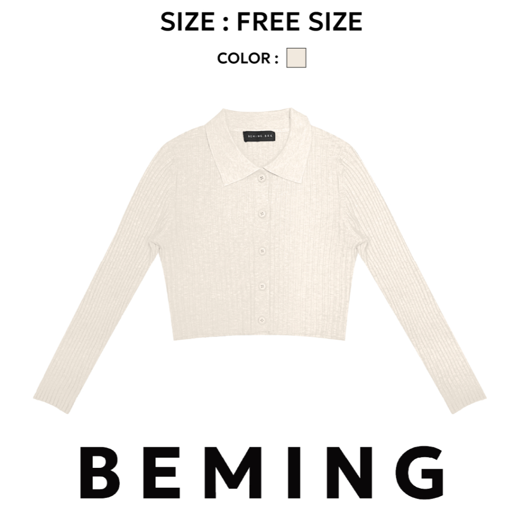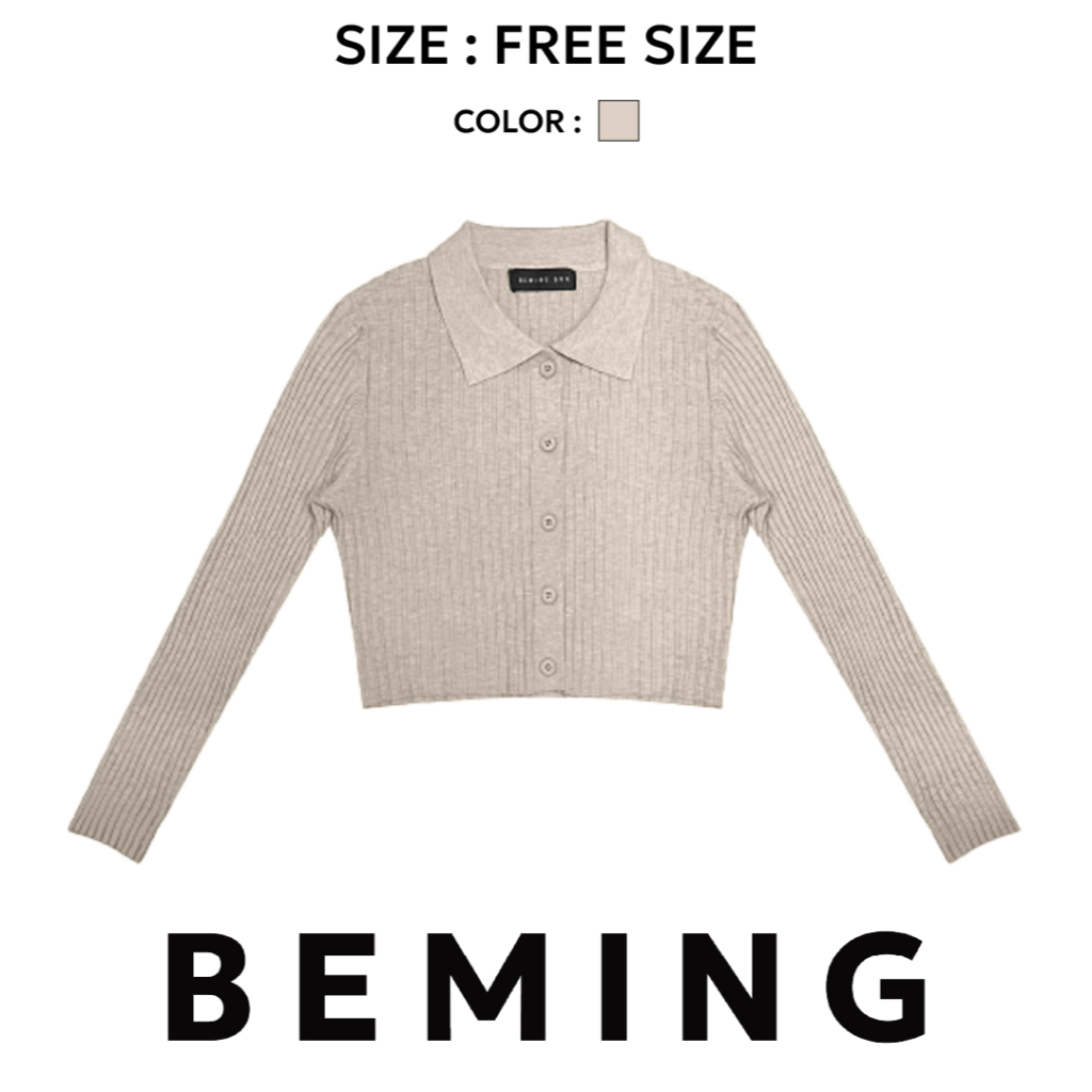 Bemingtop780 (S/M) - truffle crop top เสื้อเเขนยาวคอปก ทรงCrop ดีไซน์ผ้าร่องเพิ่มความเก๋