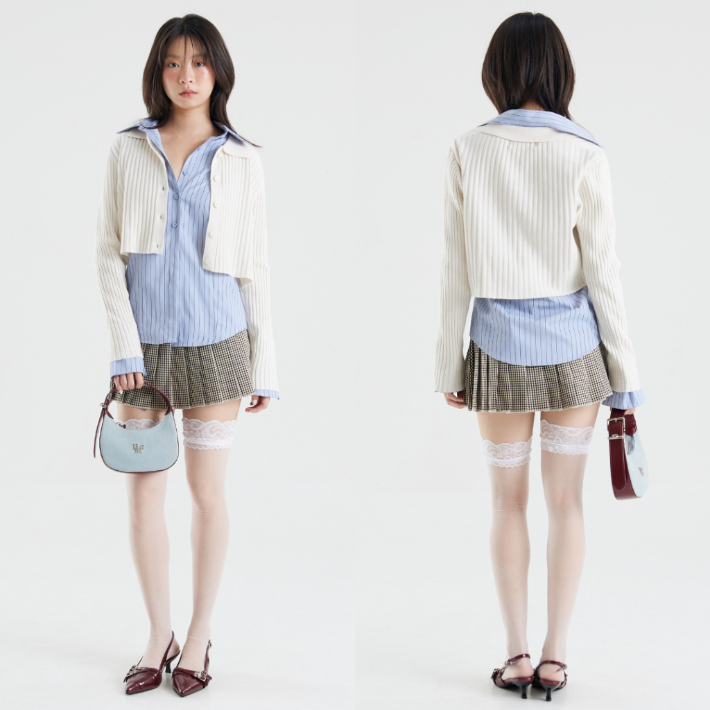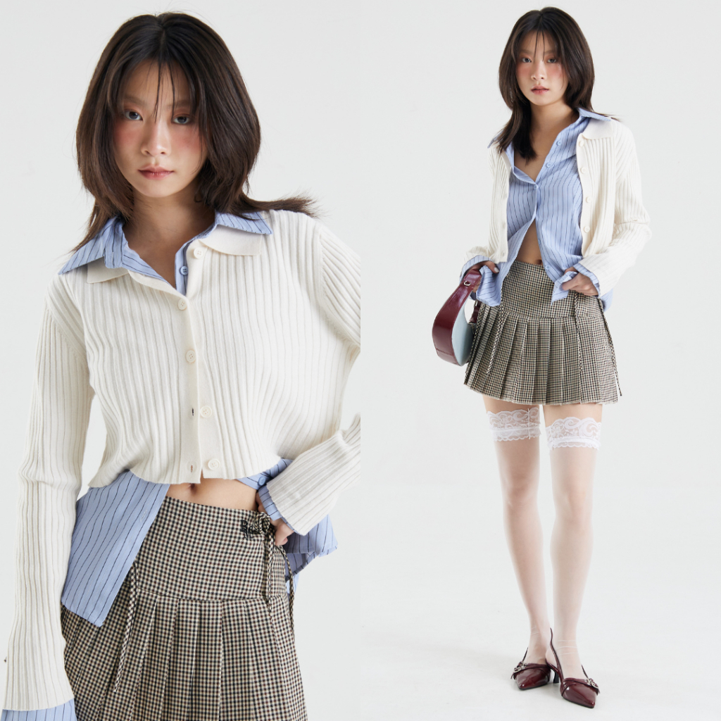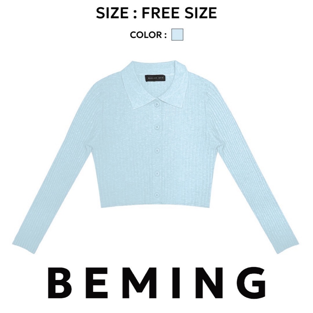 Bemingtop780 (S/M) - truffle crop top เสื้อเเขนยาวคอปก ทรงCrop ดีไซน์ผ้าร่องเพิ่มความเก๋