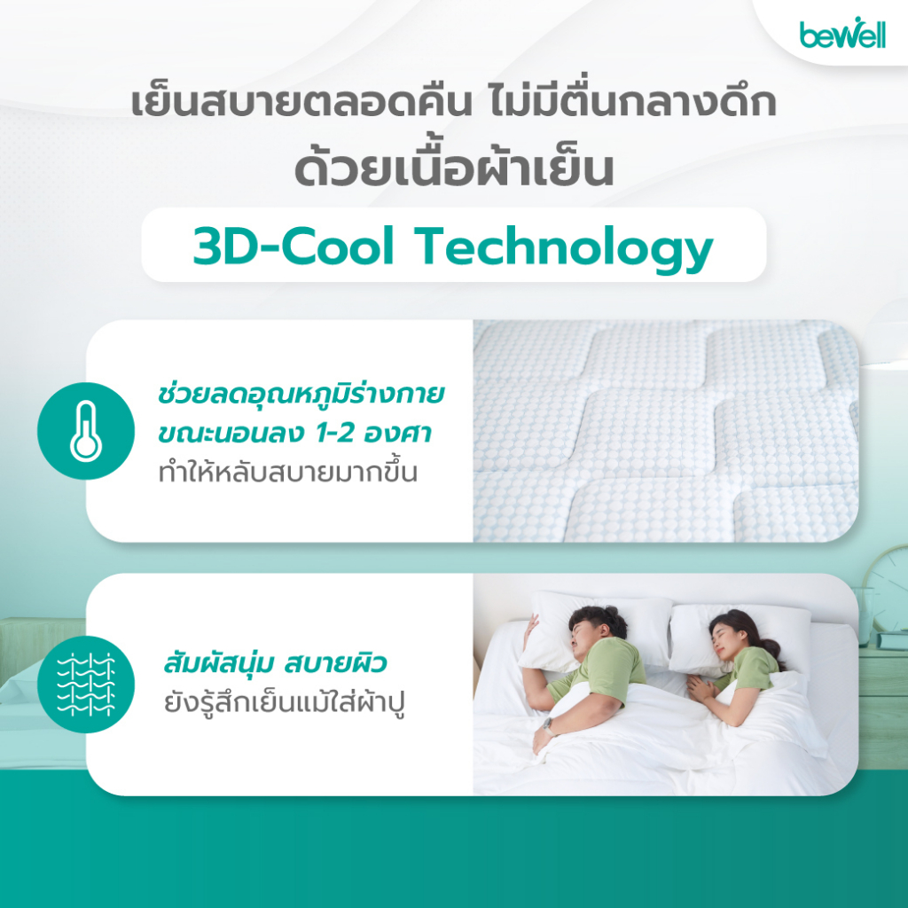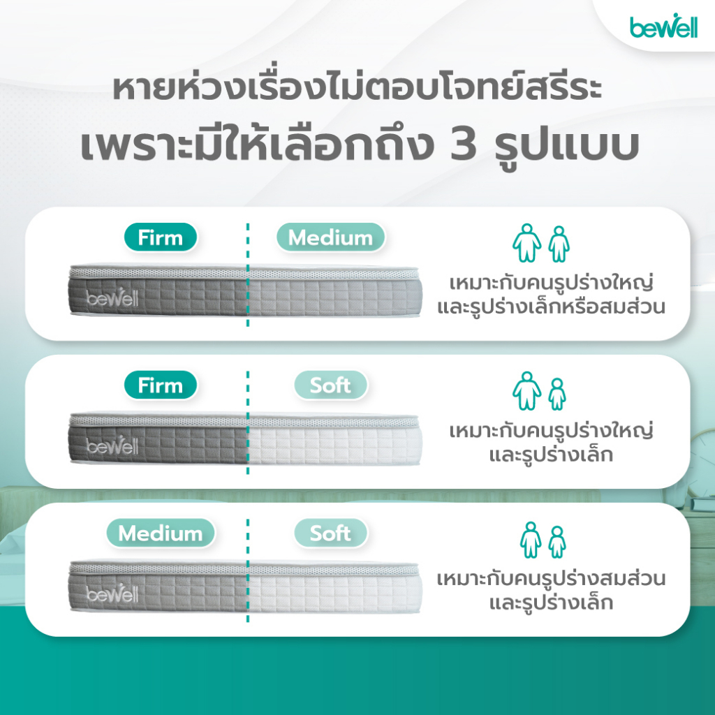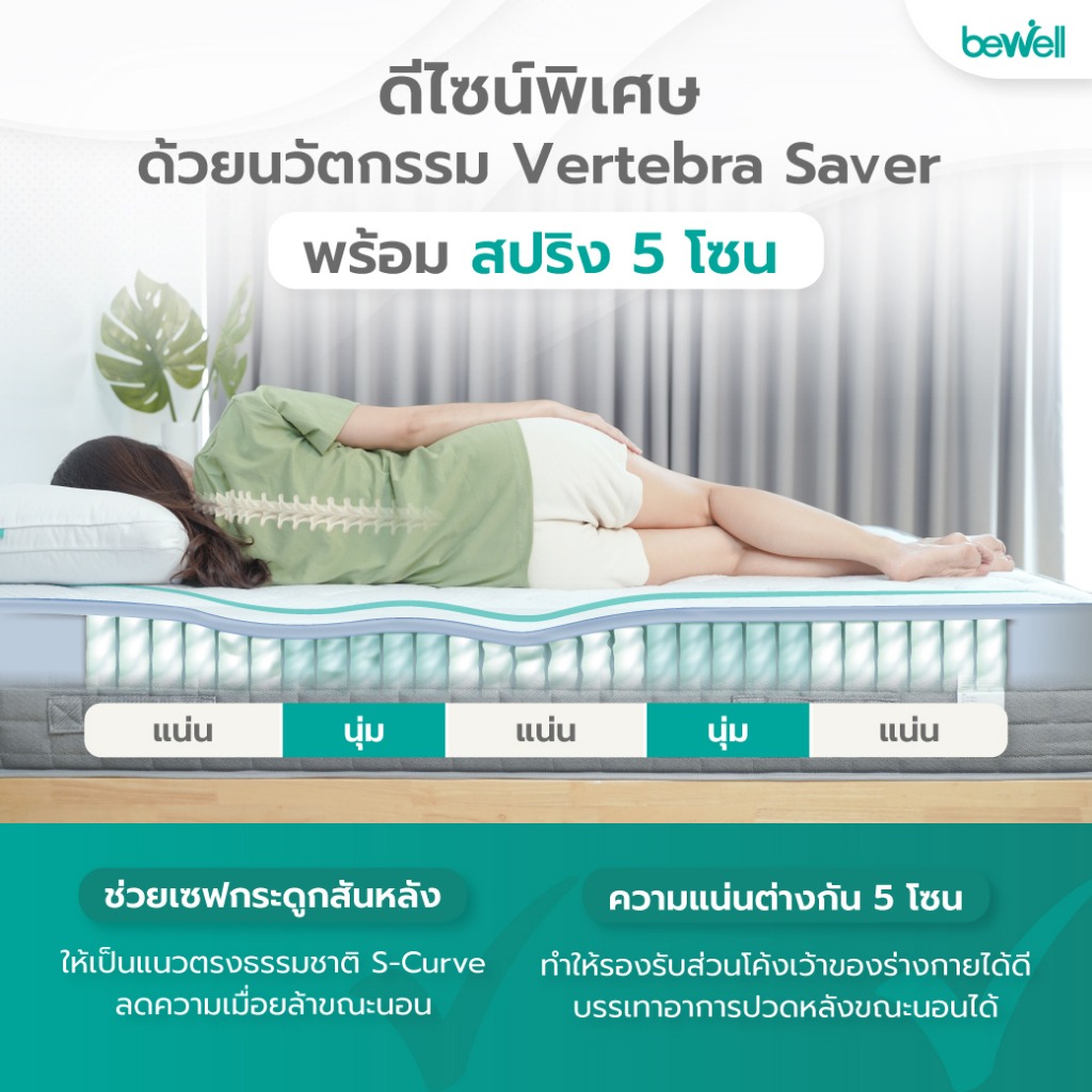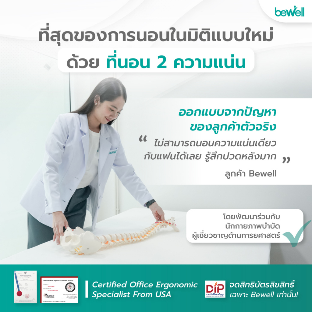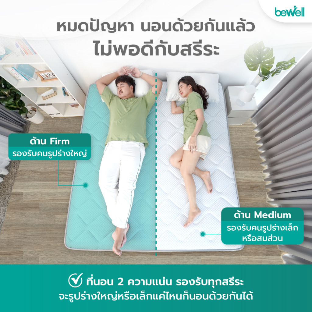 Bewell ที่นอนแบ่ง 2 ด้าน Two-side mattress เลือกความแน่นแต่ละด้านได้ตามน้ำหนักตัว รับประกัน10ปี
