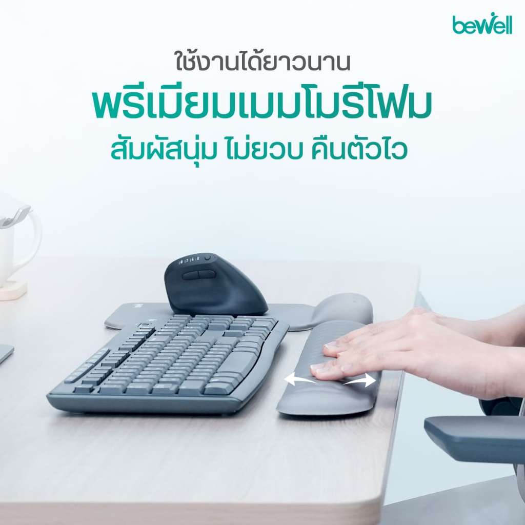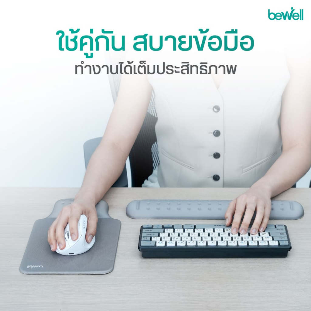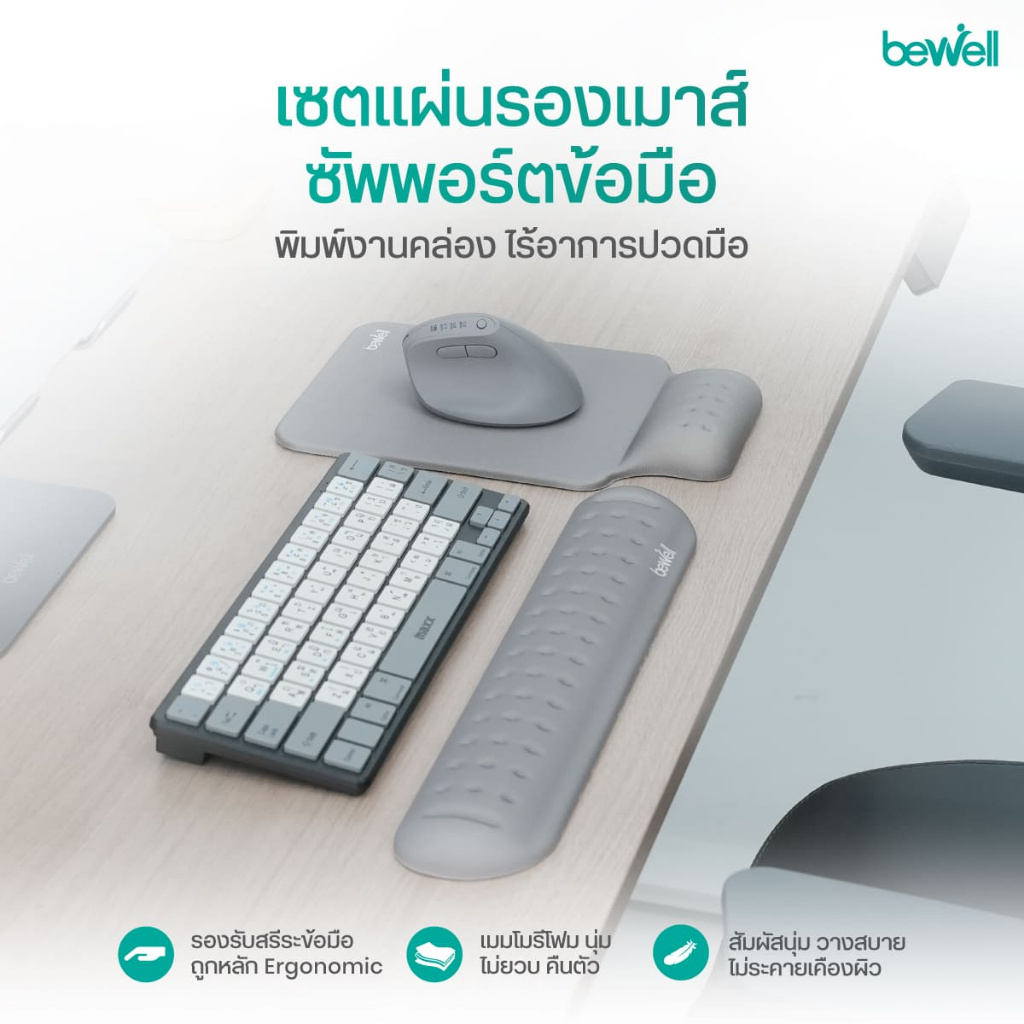 Bewell เซ็ต แผ่นรองเม้าส์ และแผ่นรองข้อมือคีย์บอร์ด บรรเทาอาการปวดข้อมือ รองรับสรีระข้อมือ แขนได้ดี