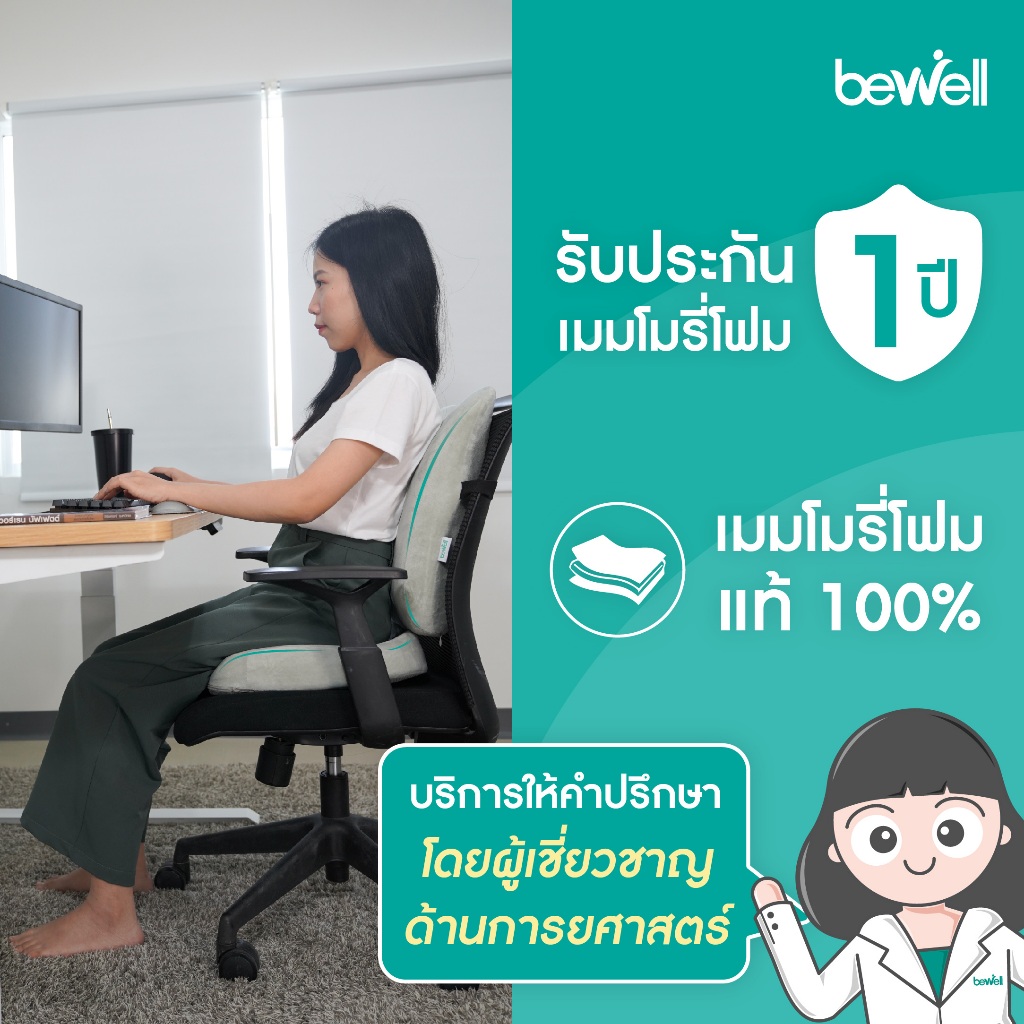 Bewell เบาะรองหลังเพื่อสุขภาพ ทรงสูง นุ่มคืนตัวดีมาก บรรเทาปวดหลังได้ดี