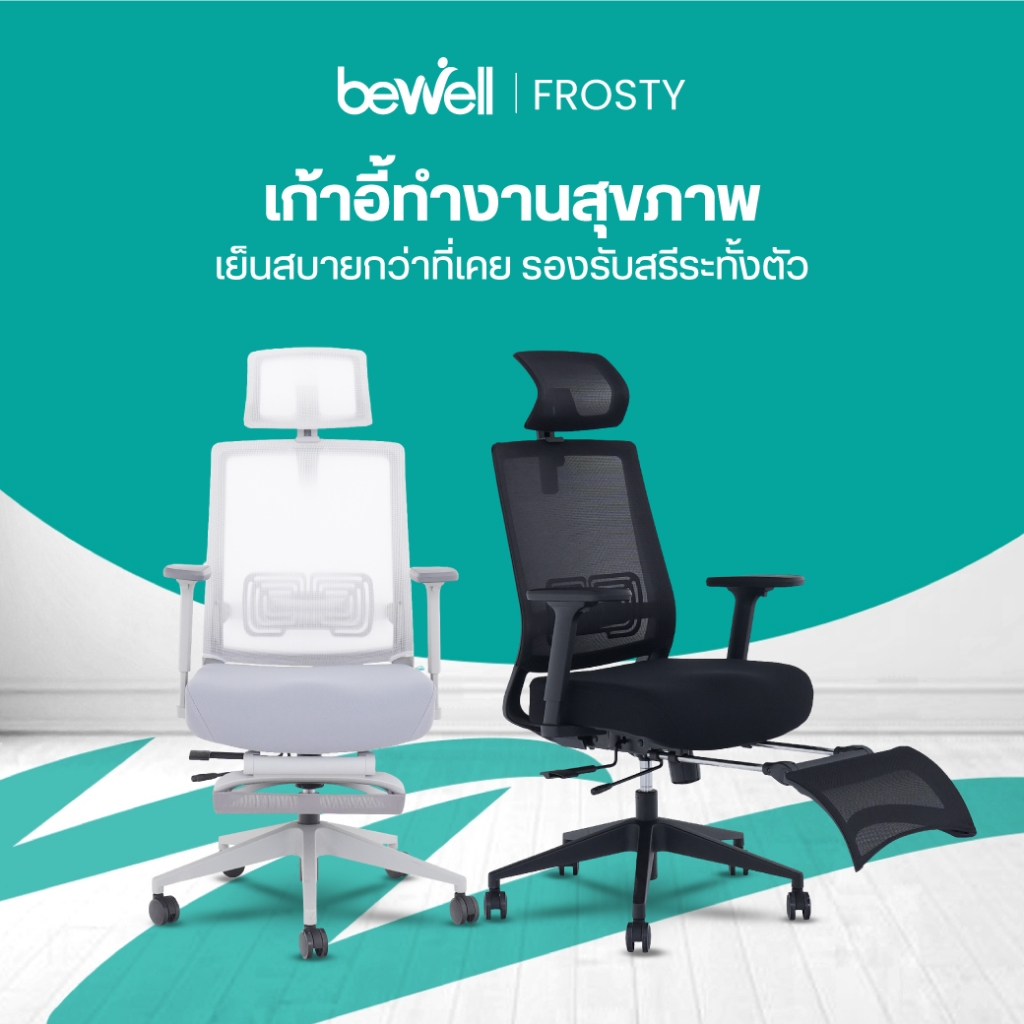 Bewell Frosty เก้าอี้เพื่อสุขภาพที่รวมฟังก์ชันการรองรับสรีระแบบครบเครื่องกับดีไซน์มินิมอลที่เข้าได้กับทุกมุมทำงา น