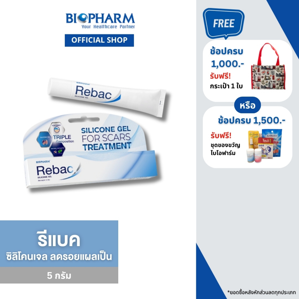 Biopharm Rebac รีแบค ซิลิโคนเจล เจลลดรอยแผลเป็น ขนาด 5 กรัม