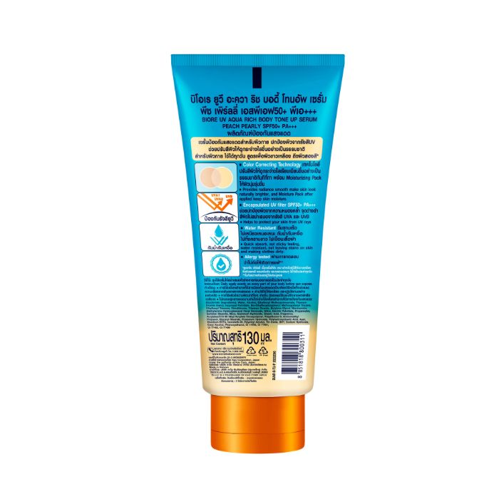Biore UV Aqua Rich Body Tone up Serum Peach Pearly SPF50+ PA+++ บิโอเร ยูวี บอดี้ โทนอัพเซรั่ม พีช เพิร์ลลี่ 130มล.