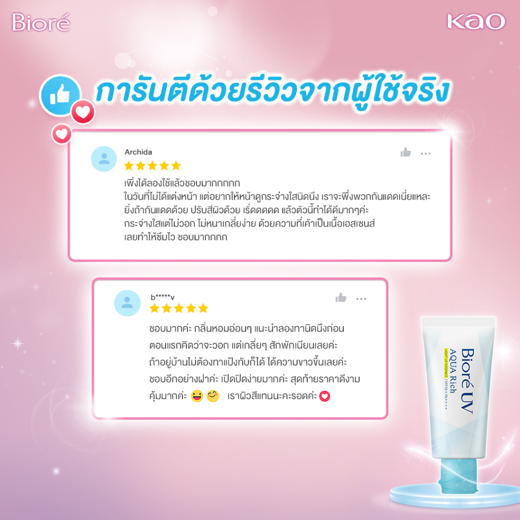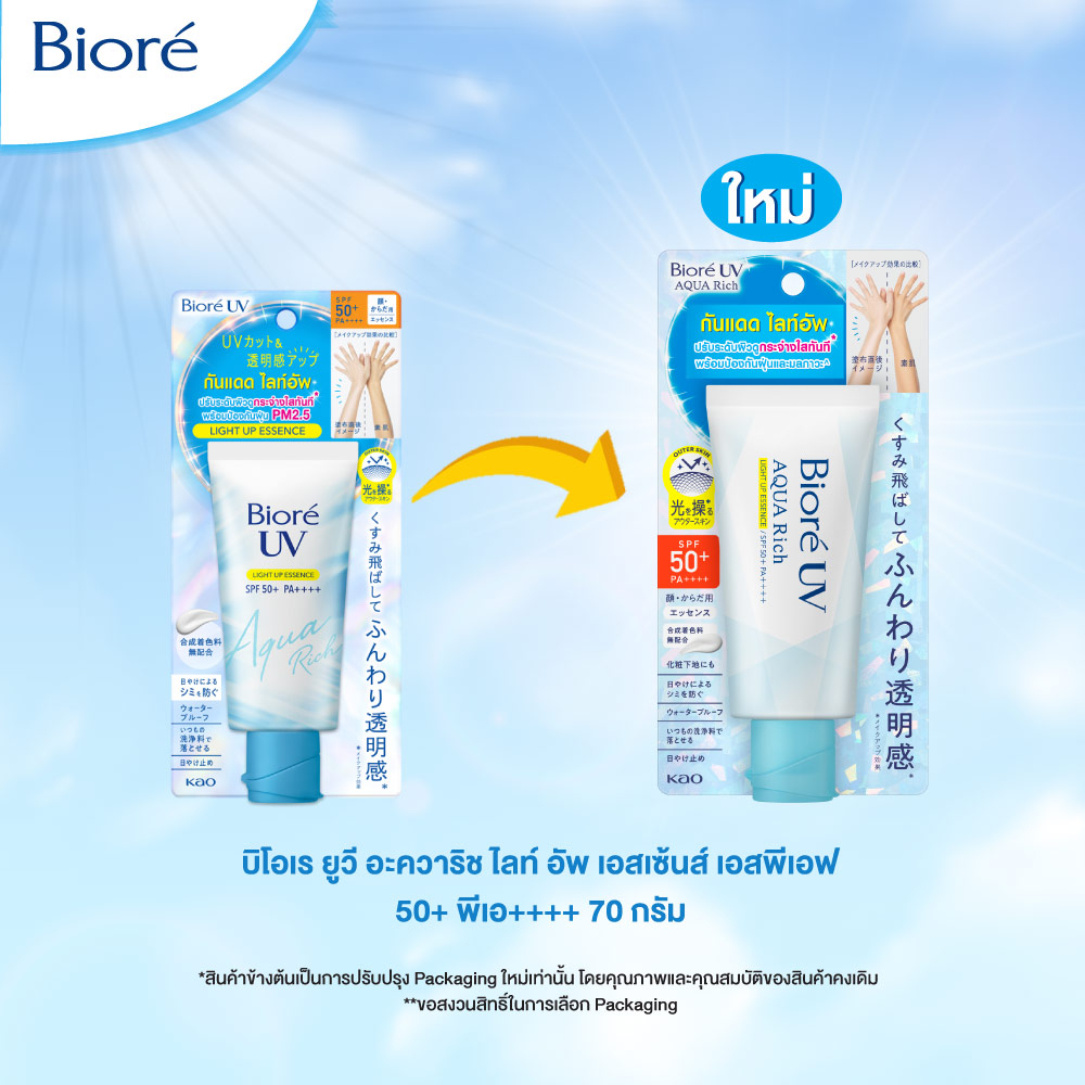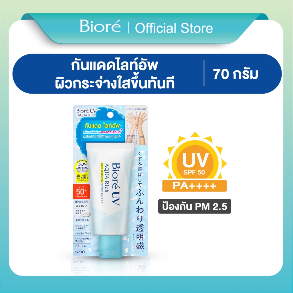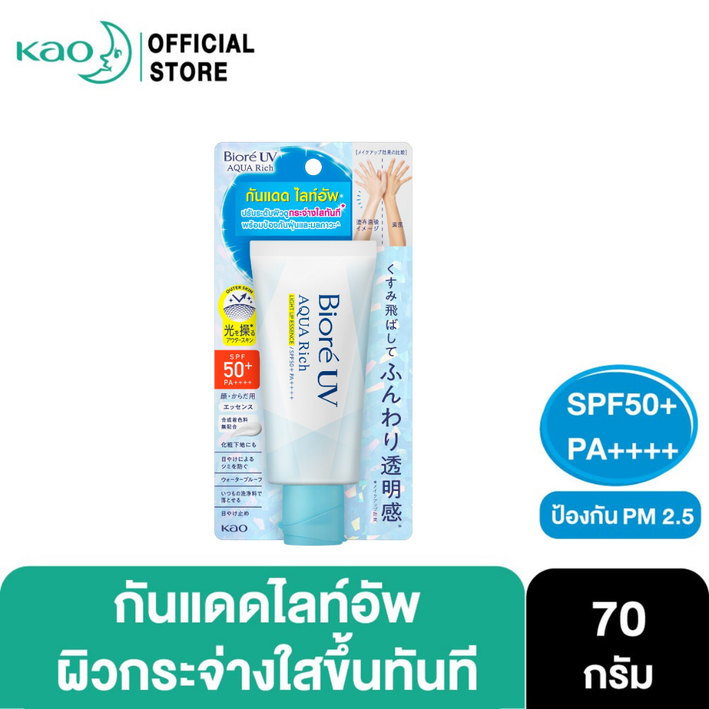 Biore UV Aqua Rich Watery Light Up Essence SPF50+ PA++++ 70 g กันแดดบิโอเร กันแดดไลท์อัพ กันแดดโทนอัพ ปรับสีผิวทันที