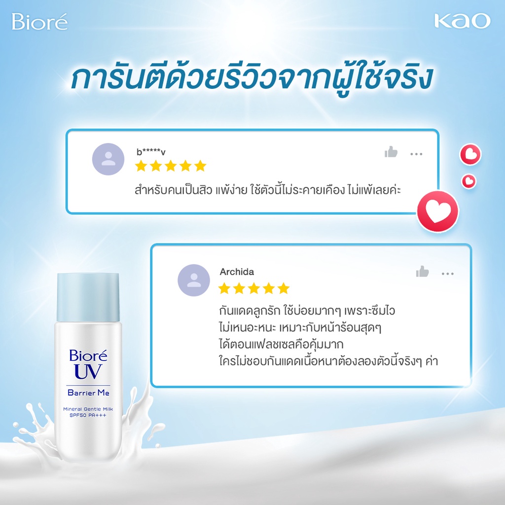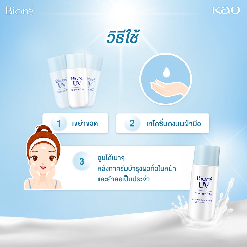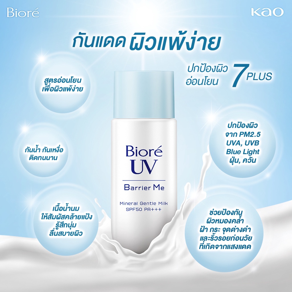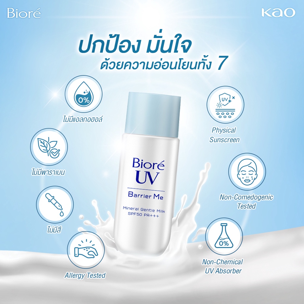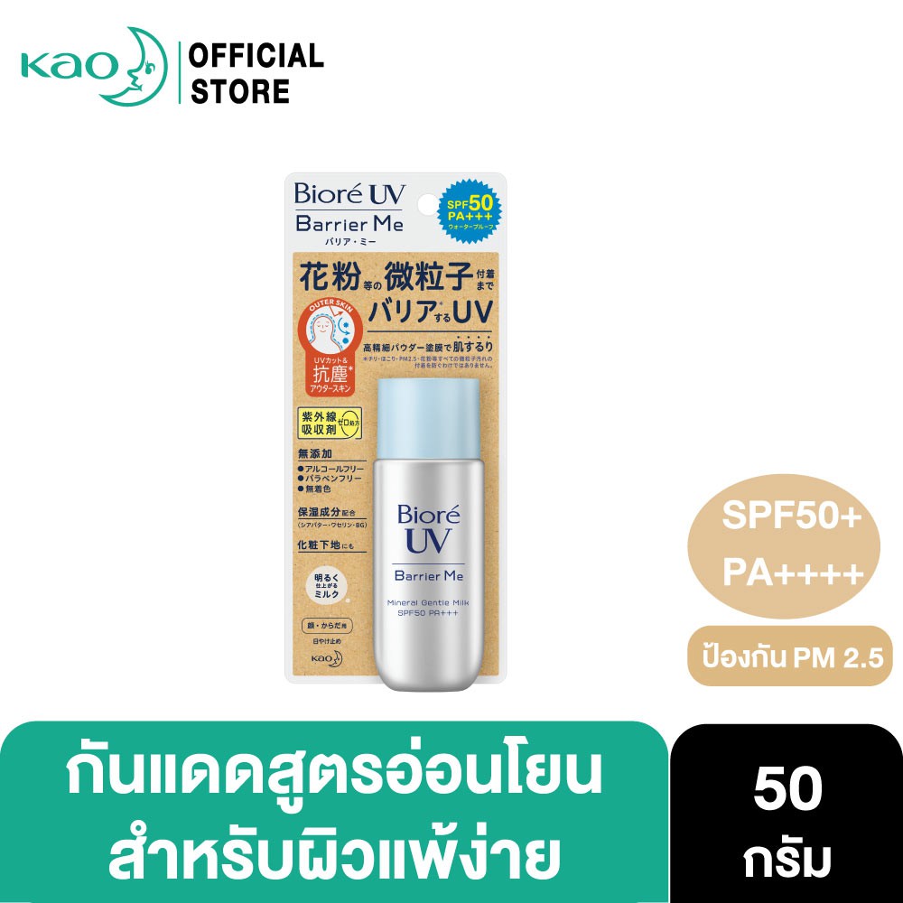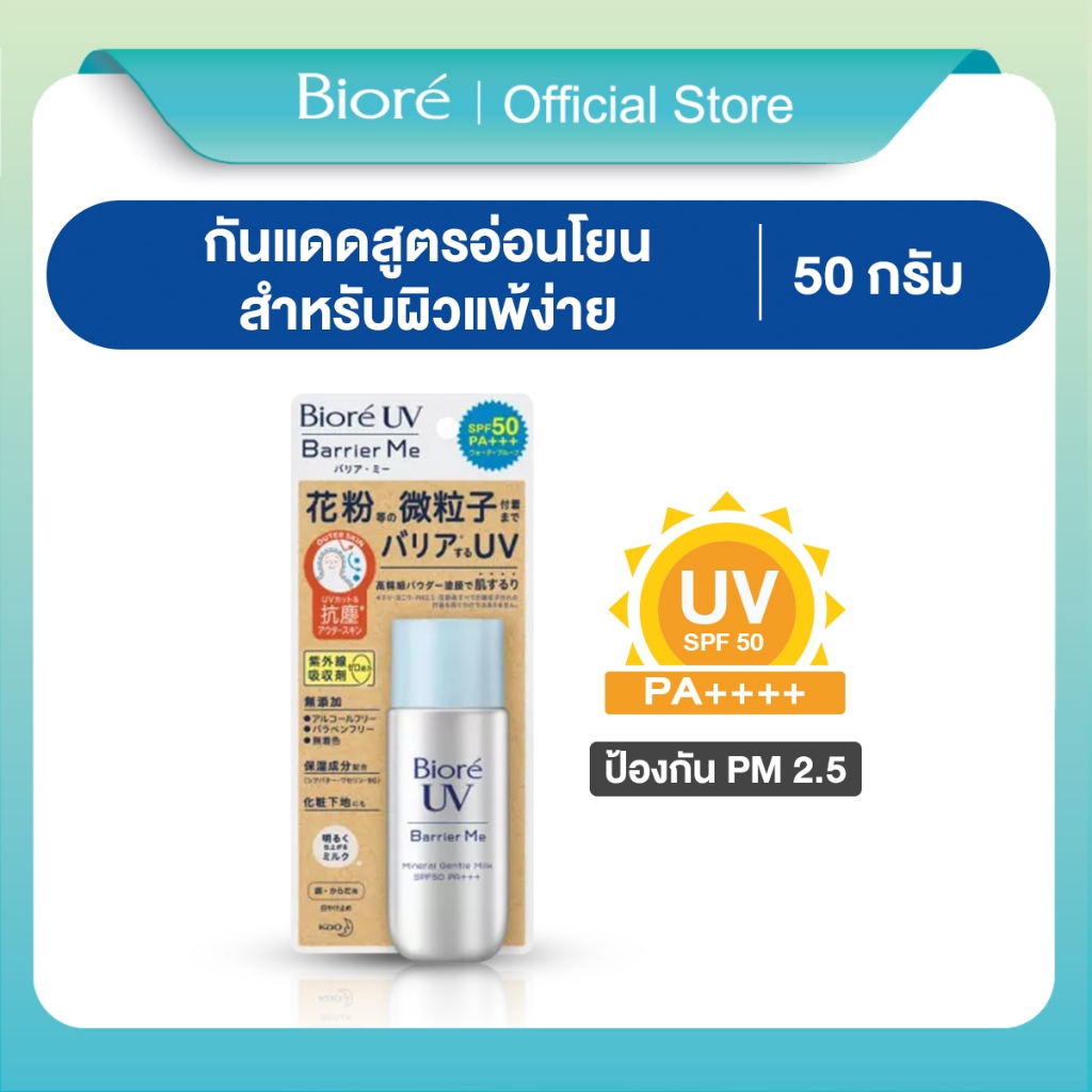 Biore UV Barrier Me Gentle Milk SPF50+ PA+++ กันแดดบิโอเร กันแดดสำหรับผิวแพ้ง่าย กันแดดน้ำนม: 50 มล