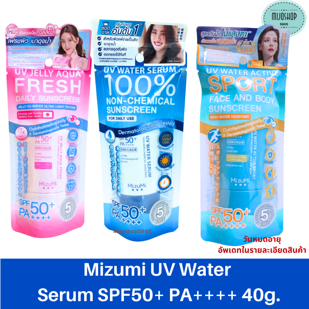 ครีมกันแดด Mizumi มิซึมิ ยูวี วอเตอร์ เซรั่ม SPF50+ PA++++ 40 กรัม มี 3 สูตรให้เลือก