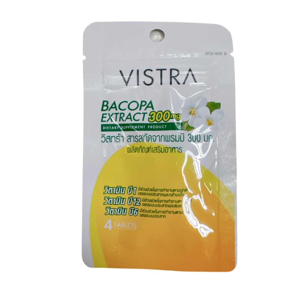 (ซอง4เม็ด) VISTRA BACOPA EXTRACT สารสกัดจากดอกพรมมิ ประเทศญี่ปุ่น