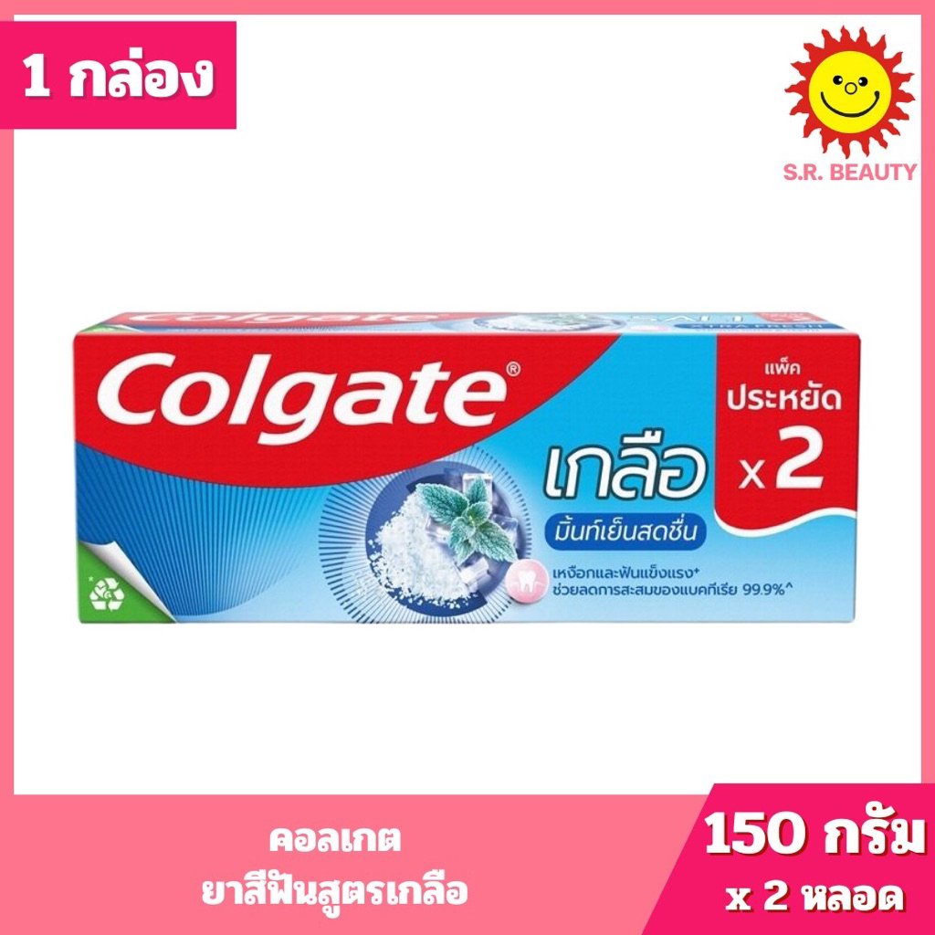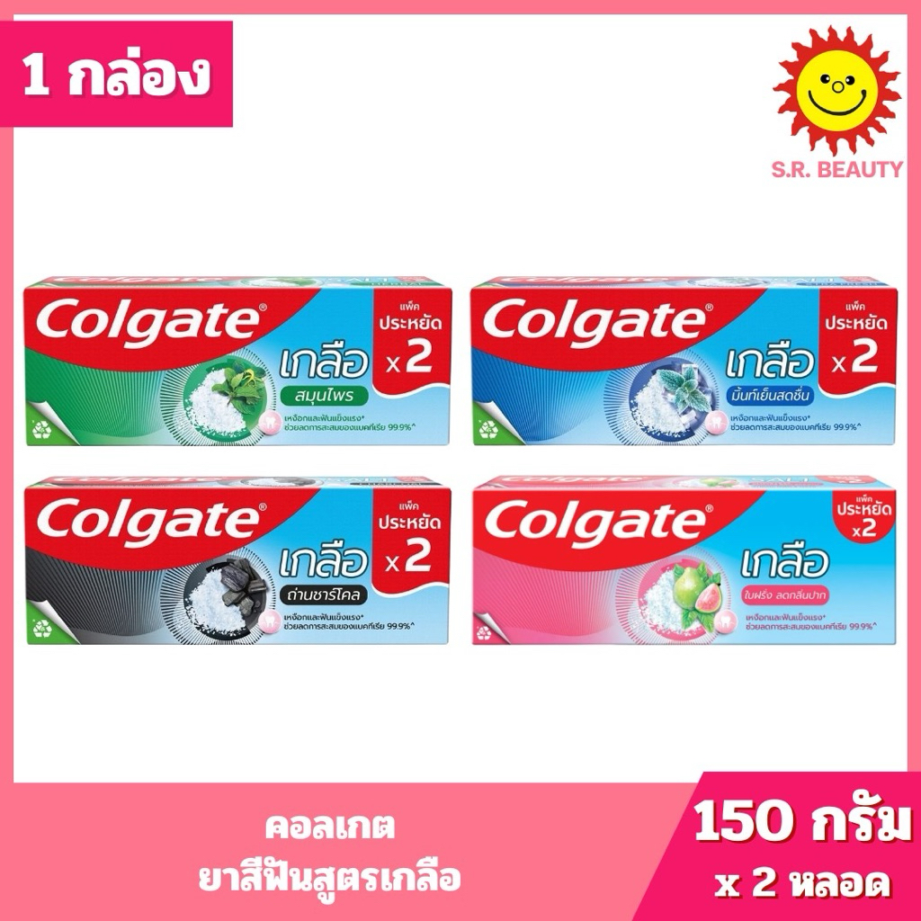 [ 1กล่อง ] Colgate Salt คอลเกต ยาสีฟันสูตรเกลือ ขนาด 150 กรัม x2 หลอด (1กล่อง) คละสูตร