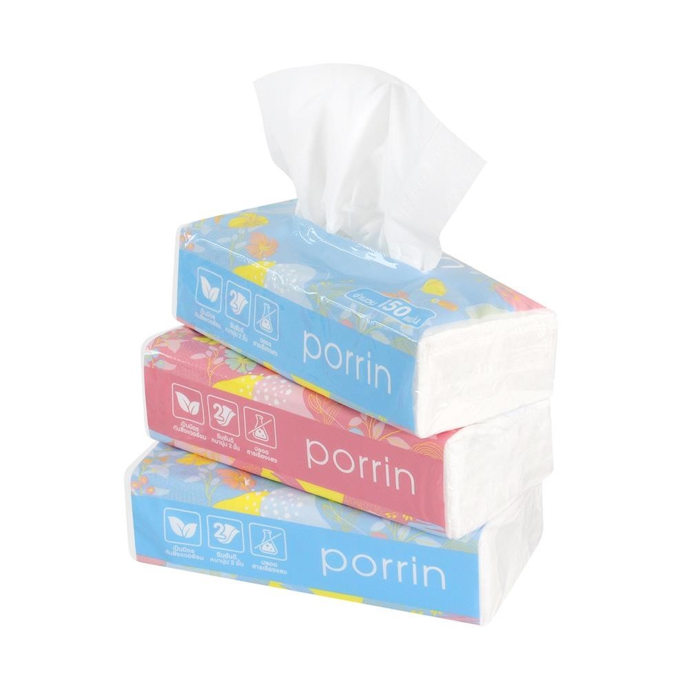 PORRIN กระดาษเช็ดหน้า SOFT PACK 150 แผ่น แพ็ค 4 จัดส่งโดย HomePro
