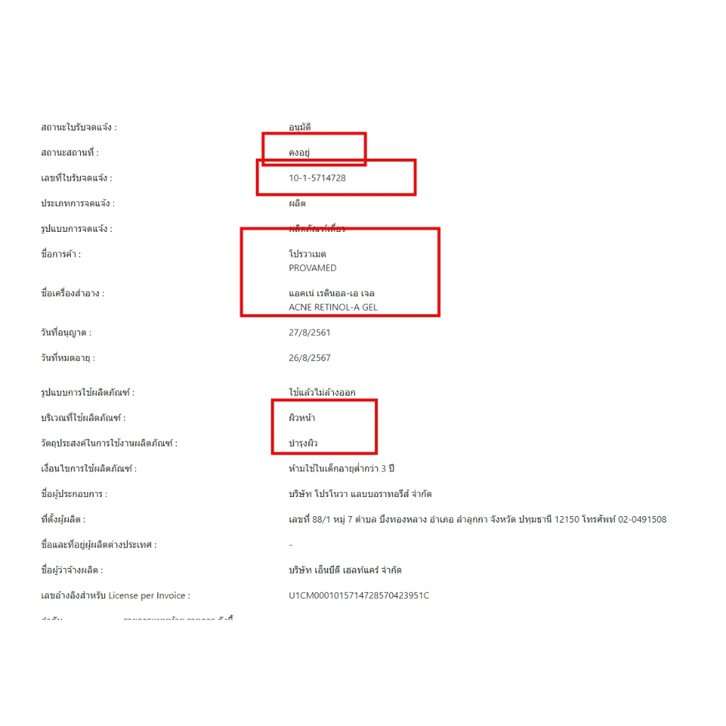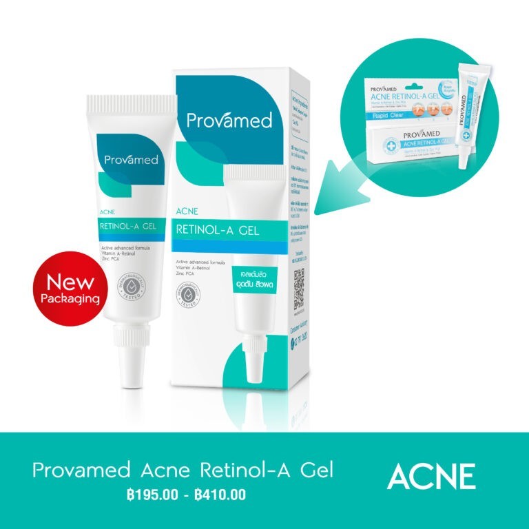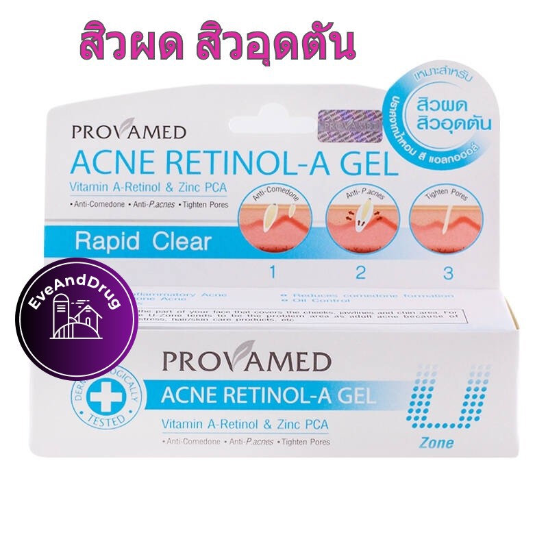 Provamed Acne Retinol A gel 10g Vit a+zinc Rapid clear เจลแต้มสิว อุดตัน สิวผด สิวผื่น สิวอักเสบ